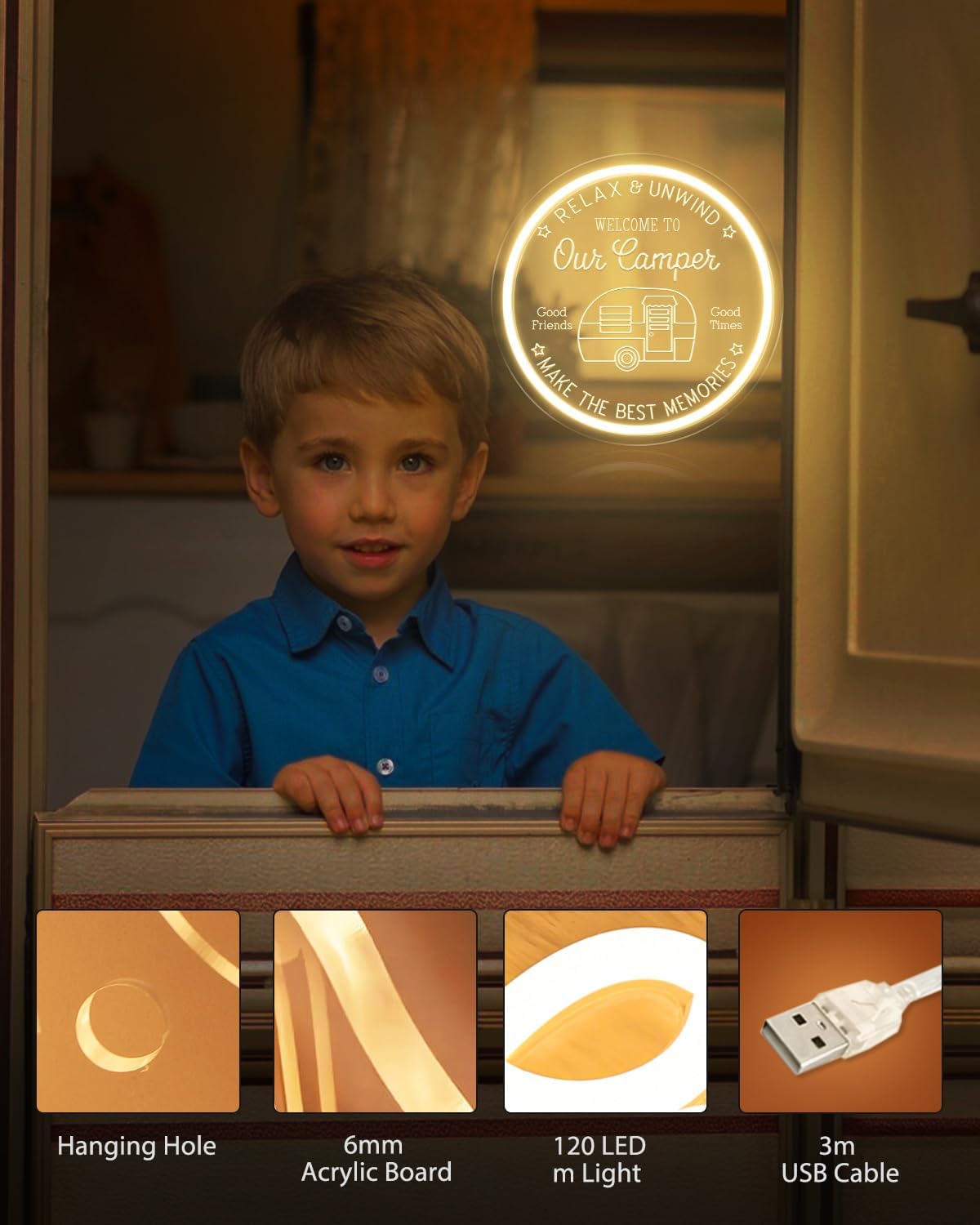 - 🍾【Perfect Wall Decor】Use this camper neon sign in your party to create a unique atmosphere and make a wonderful addition. It's a really nice mood light and it definitely adds flavor to an otherwise plain space. This led sign can also be used to decorate many scenes, such as garage, back yard, patio, poolside, bedroom, home pub, game room, man cave, BBQ party and so on.
