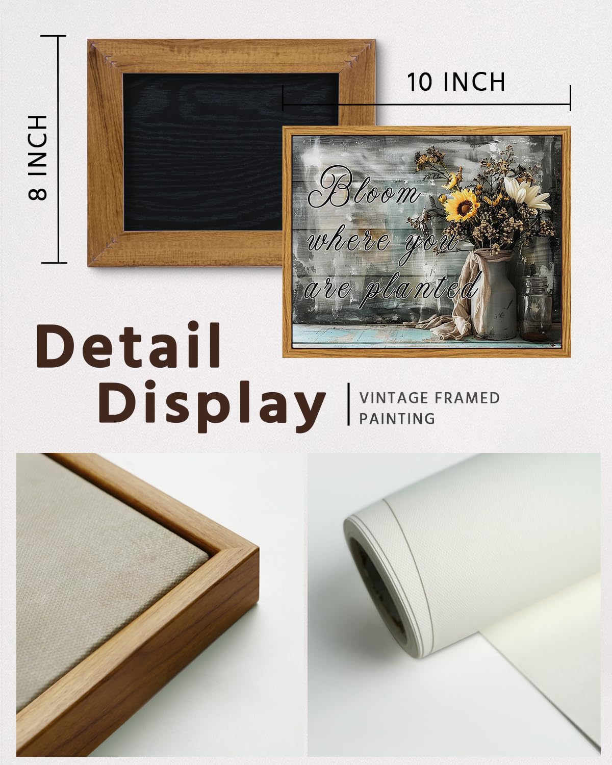 VIYYIEA Framed Canvas Wall Art Home Decor Bathroom Decor Farmhouse Flower Pictures and Quote Wall Decor Bath Canvas Prints Rustic Painting Aesthetic Home Decor for Living Room Bedroom Kitchen 8x10in