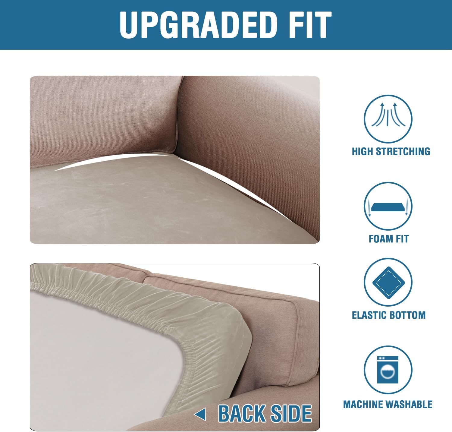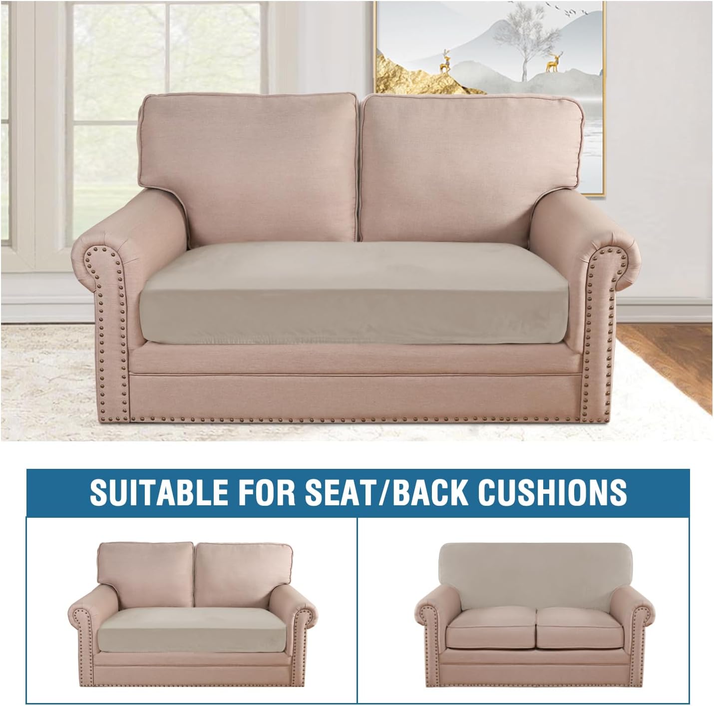 H.VERSAILTEX Velvet Stretch Individual Couch Cushion Cover Plush Slipcover for Loveseat Sofa Furniture Protector Seat Cover (1 Piece Loveseat Cushion Cover, Oatmeal)