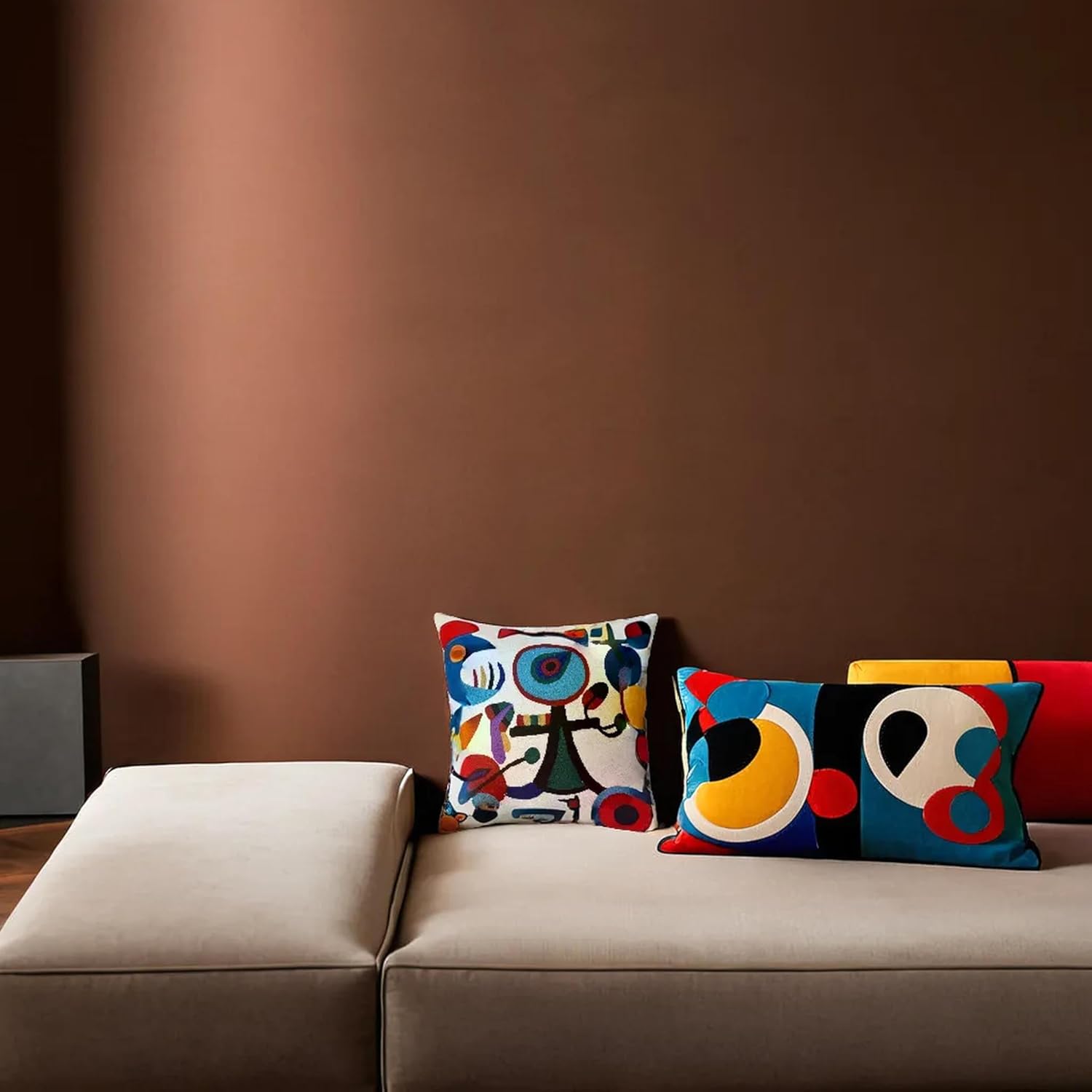 Picasso Inspired Decorative Pillow Cover Hand Embroidered Abstract Toss Pillows Farmhouse Chair Cushion Contemporary Pillowsham Mid-Century Chair Cushions Wool Size 18x18