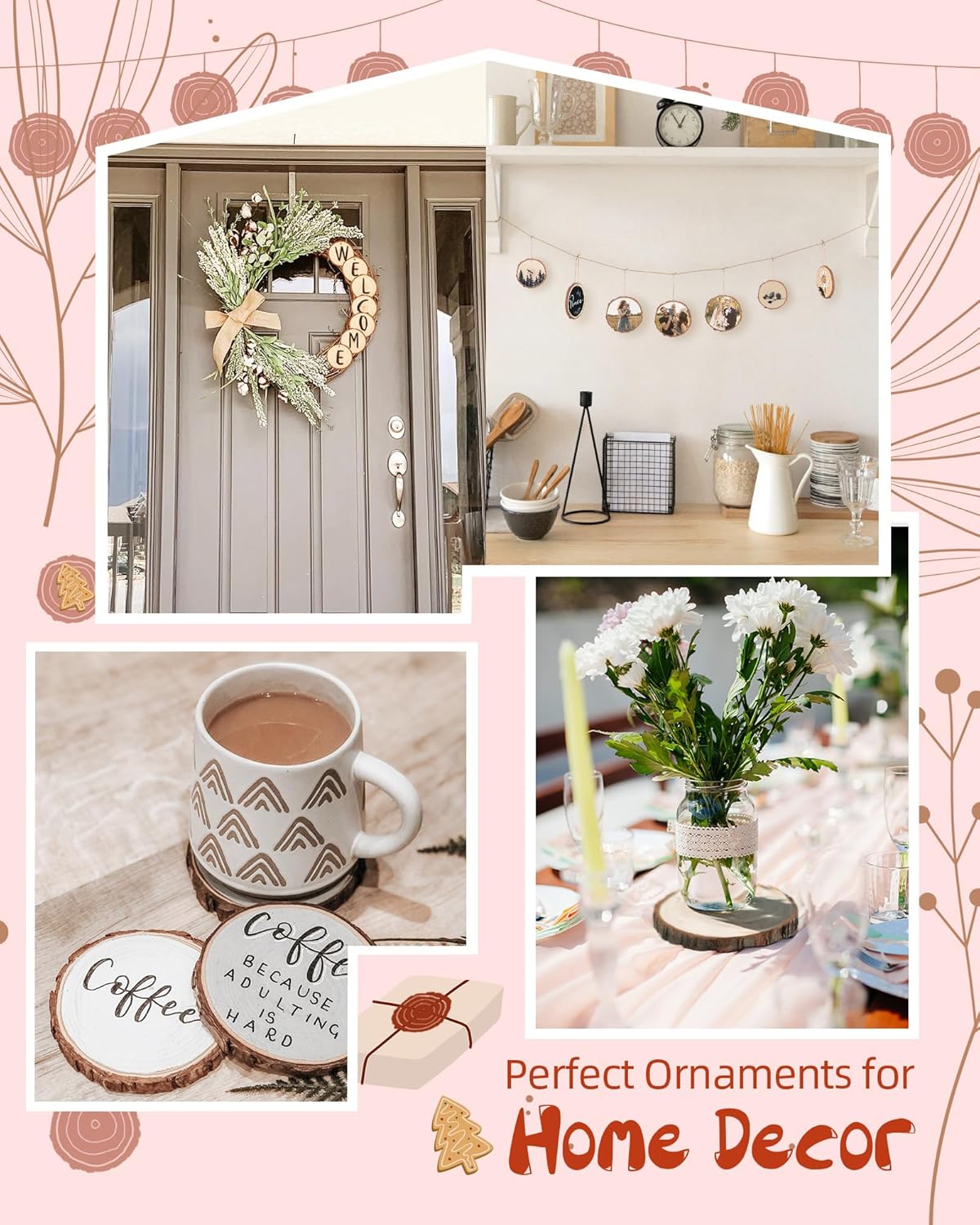 - ๐๐๐ฌ๐ฒ-๐ญ๐จ-๐๐ฌ๐: A set of 30-piece wooden discs with pre-drilled hole is included with bonus twines for crafting hanging decorations effortlessly