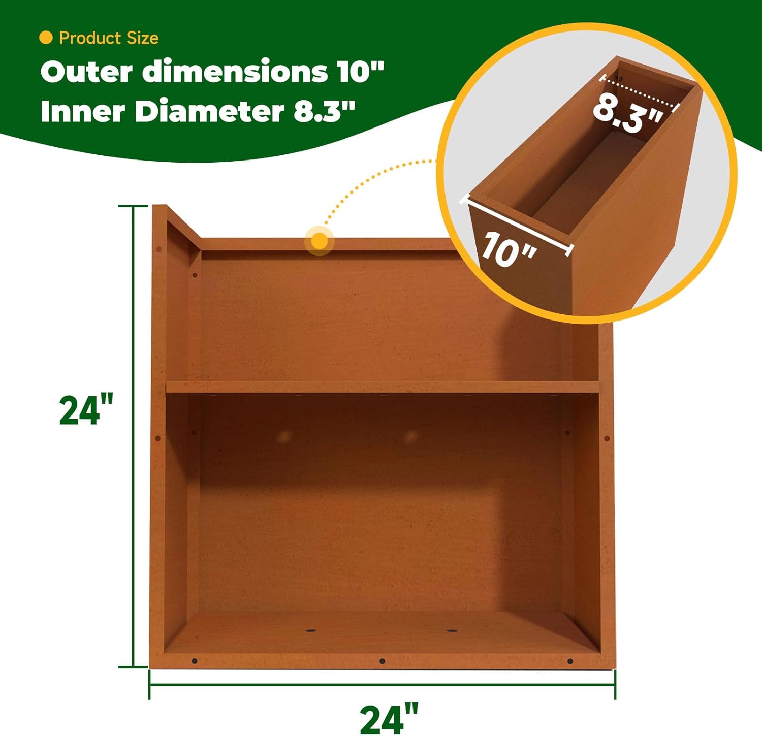 Galvanized Steel Metallic Heavy Planter for Outdoor Plants Metal Outdoor Planter Spliced Flower Box with Partitions for Outside,Indoor,Garden (Corten, 24 * 10 * 24)