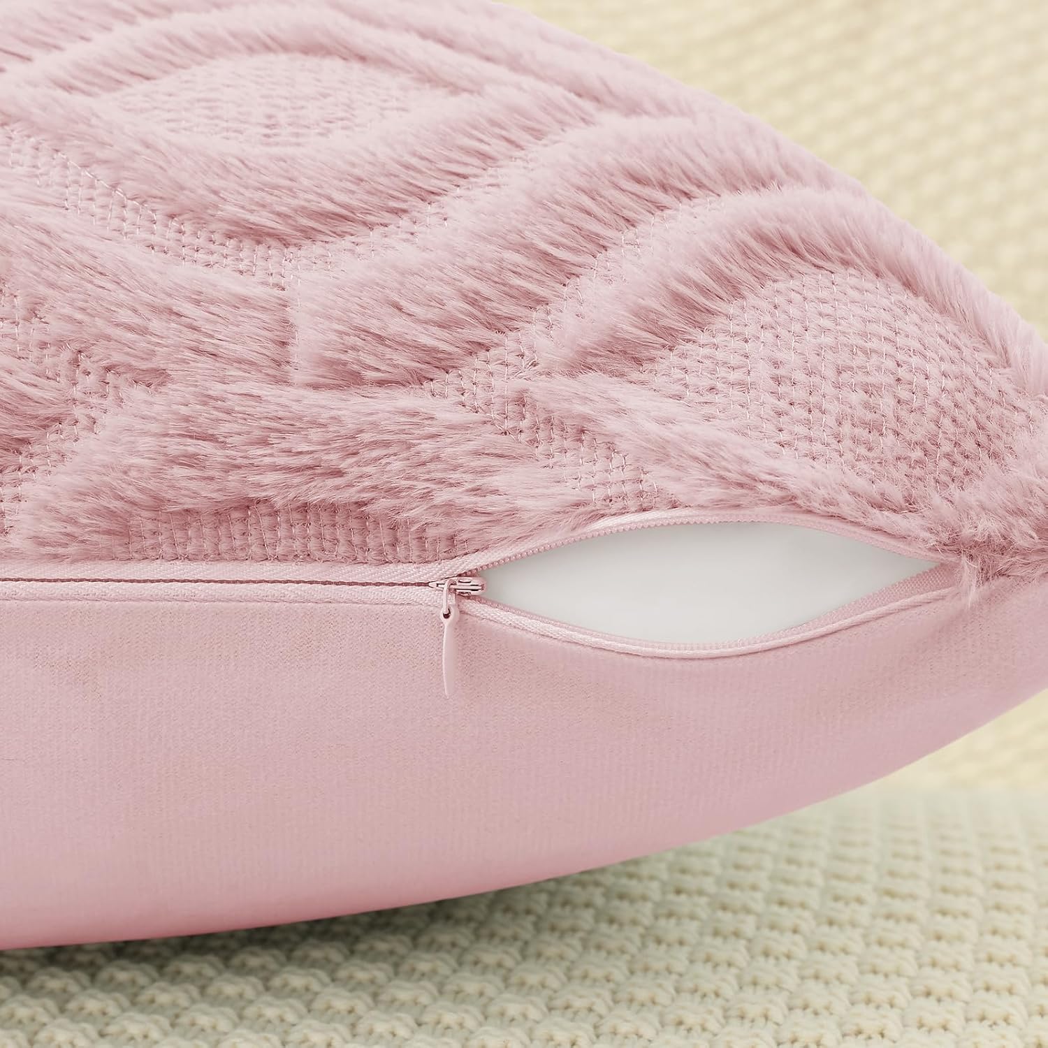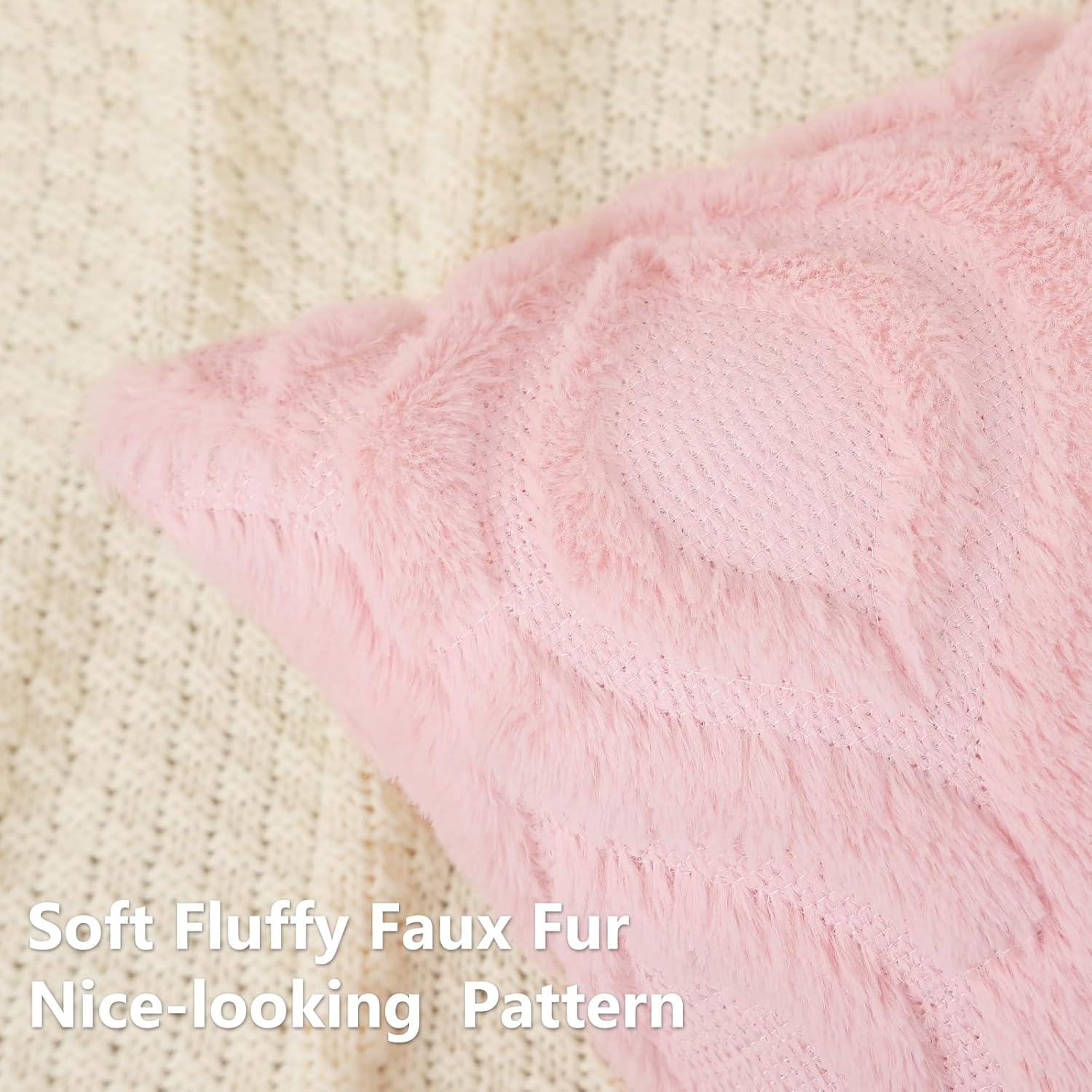 decorUhome Throw Pillow Covers 22x22 Inch Set of 2, Soft Plush Decorative Faux Fur Light Pink Solid Couch Pillow Covers, Accent Farmhouse Neutral Square Euro Pillow Cases for Sofa Bed Living Room