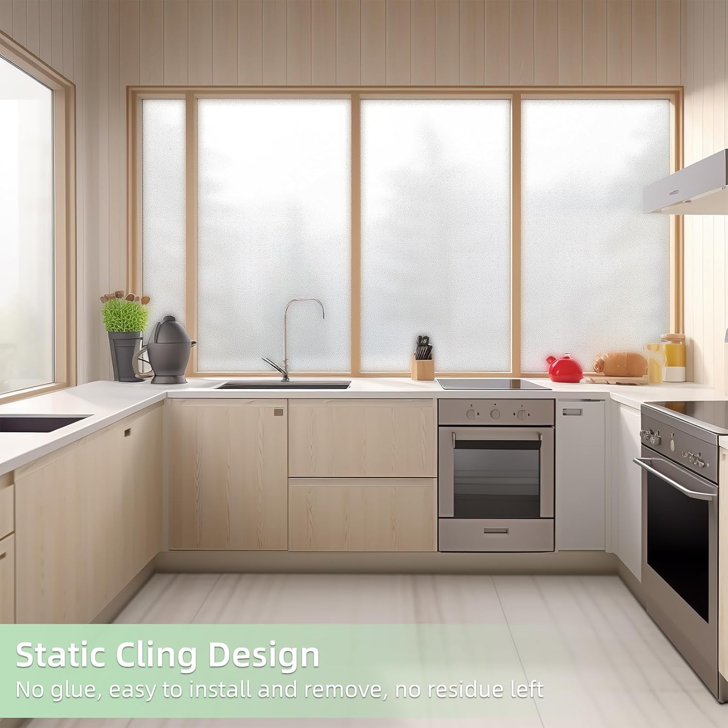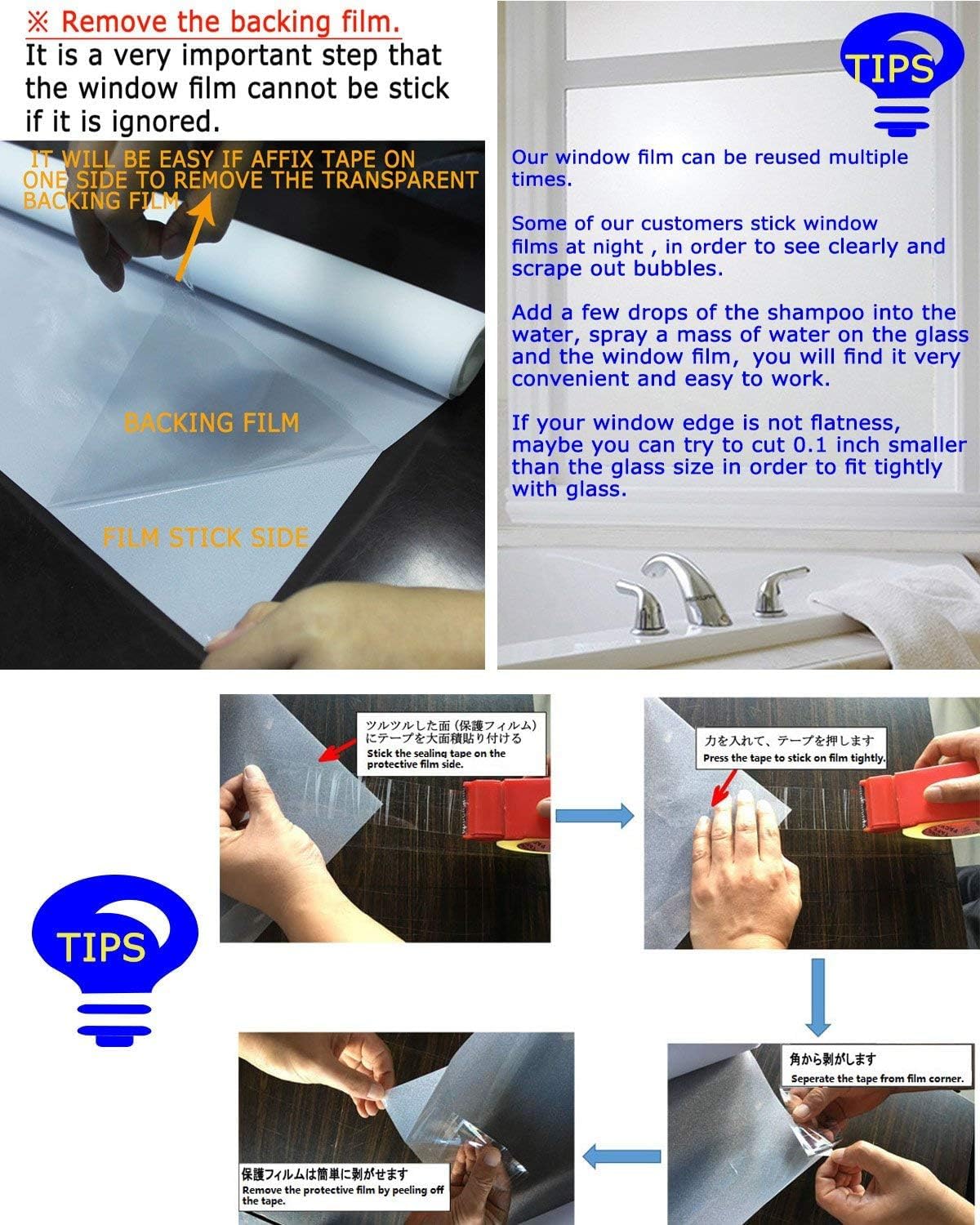 - Reusable Static Cling: This window film is no-glue, easy to position and remove without any residue or any harmful substances release. So it can be reused if not damaged or smudged.