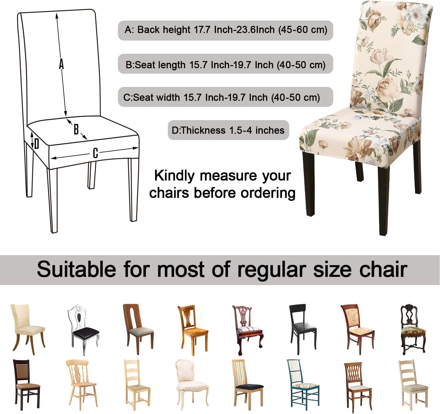 - 【High Quality of Chair Cover】- This dining chair slipcovers are made of stretchy spandex fabric, soft, comfortable and wrinkle resistant, no ironing required; Stretchable Material,stretch that recovers quickly,secure fit with sewn-in elastic hem.