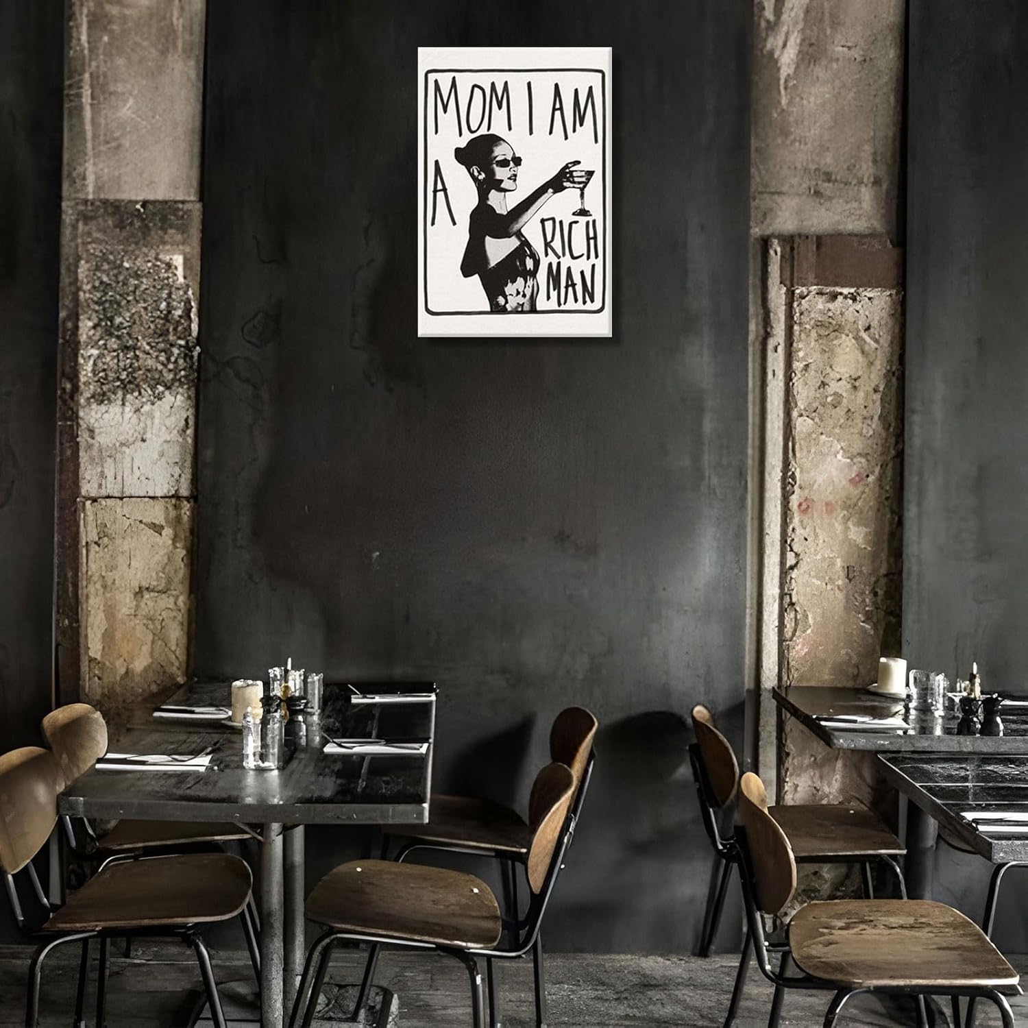 Mom I Am A Rich Man Aesthetic Retro Music Goblet Poster Feminist canvas Wall Art Vintage Bar Cart Wall Decor Preppy Dorm Decor Unique Wall Art prints painting 16x24in Framed