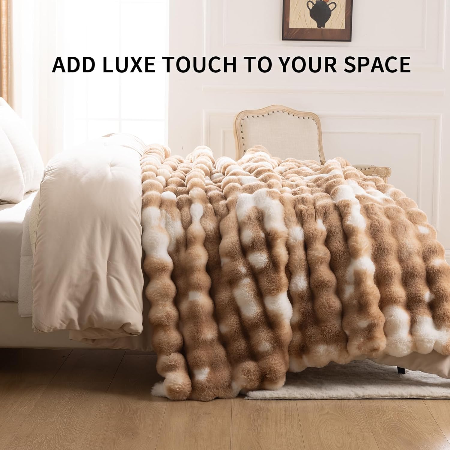 - Ultra-Soft Dual-Layer Comfort: Experience cloud-like softness with our bubble faux fur throw blanket, Combining a fluffy faux fur exterior with an ultra-soft microfleece interior, this blanket delivers a truly luxurious tactile experience. Designed for year-round comfort offers breathable warmth and sumptuous coziness in every season