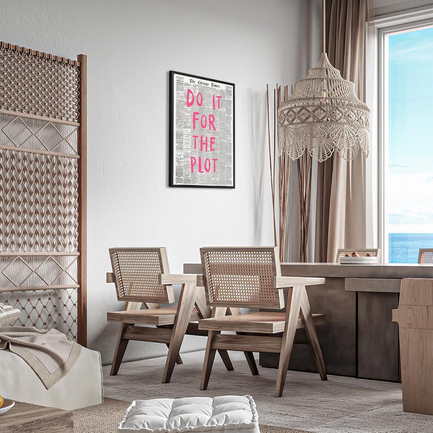 Liyark Retro Black And White Chicago Newspaper Poster Pink Trendy Preppy Apartment Art Motivational Affirmation Do It For The Plot Prints For Home Bedroom Living Room Wall Decor 24x36in Framed