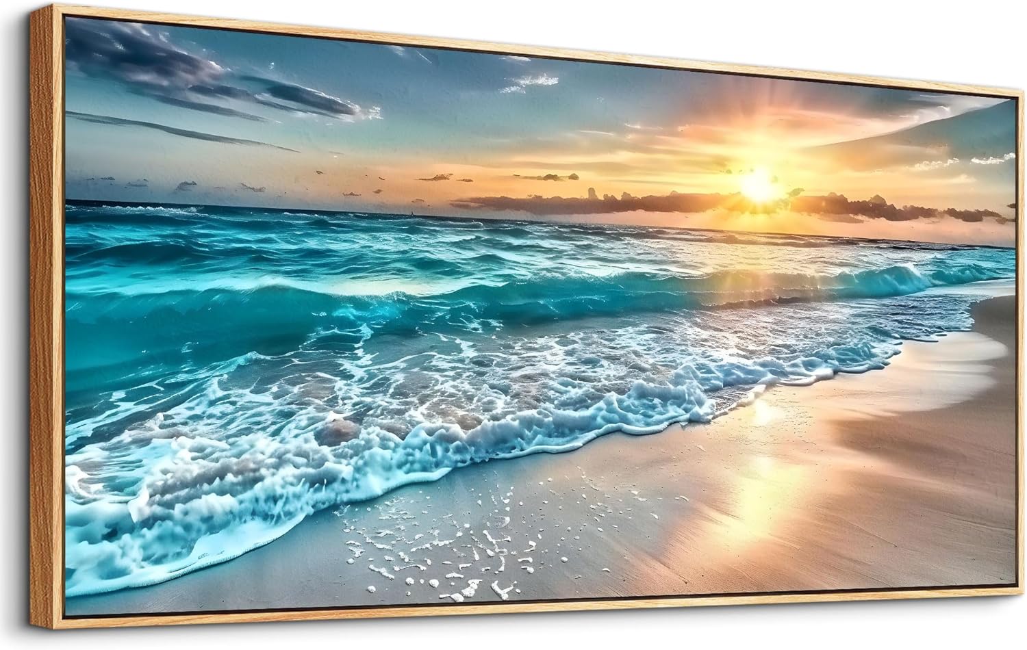 hyidecorart Large Wall Art For Living Room Wall Decorations For Bedroom Office Wall Decor Wood Framed Canvas prints Painting Blue Sea Wave Pictures Modern Beach Seascape Posters Home Decor Artwork