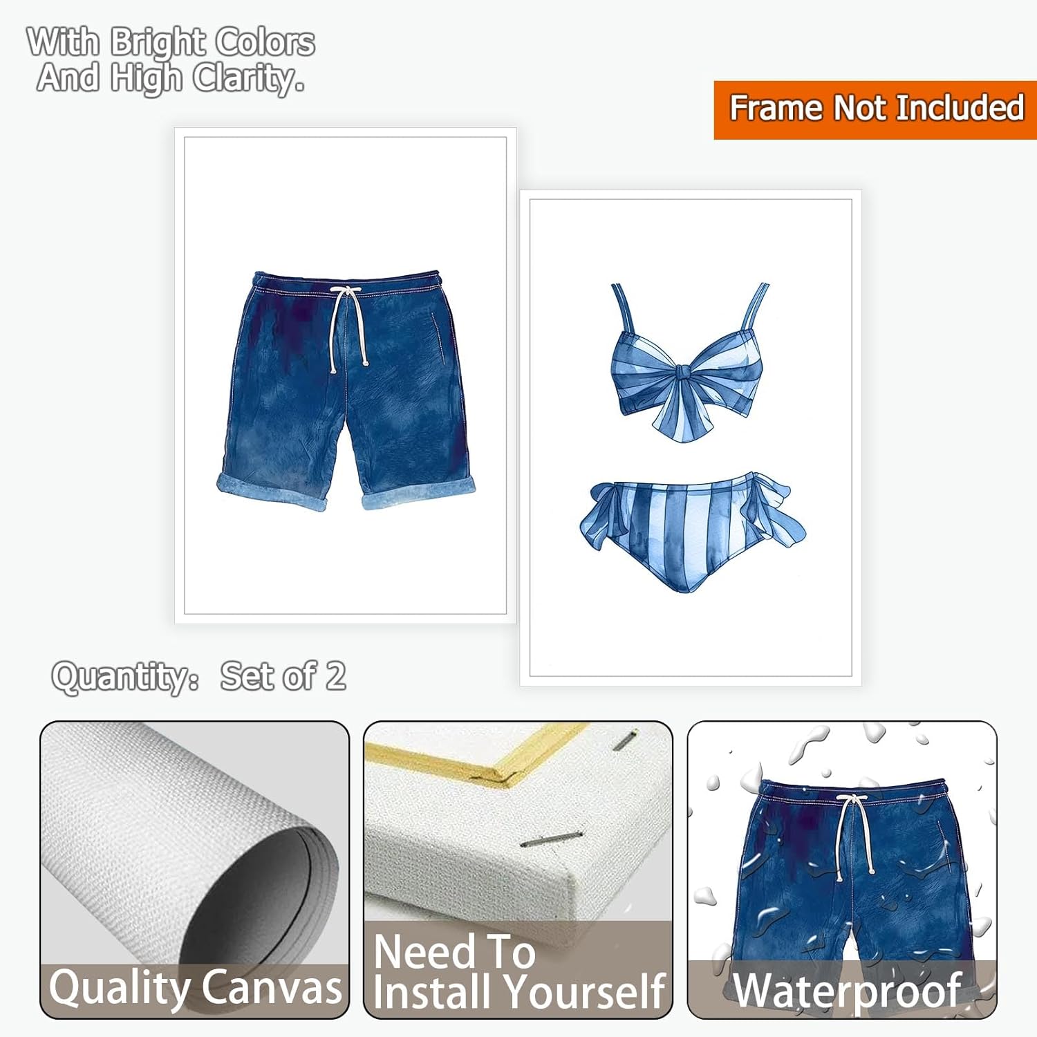 Liyark Set of 2 Retro Navy Blue And White Swimsuit Art Posters Beach Bathing Suit Prints Painting Beach House Wall Art Coastal Wall Decor Pictures For Bathroom Home Decoration 12x16in Unframed
