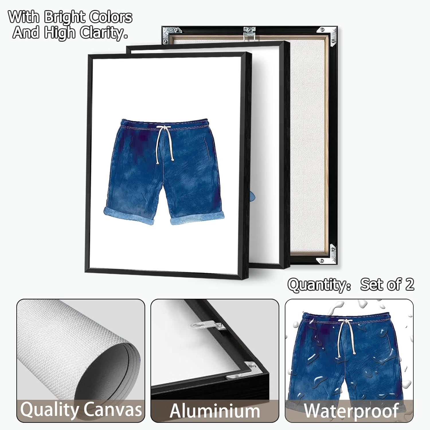 Liyark Set of 2 Retro Navy Blue And White Swimsuit Art Posters Beach Bathing Suit Prints Painting Beach House Wall Art Coastal Wall Decor Pictures For Bathroom Home Decoration 12x16in Framed