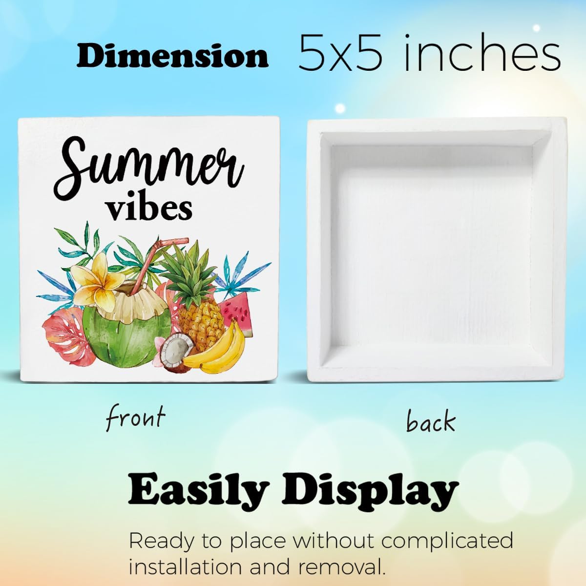 Oqtumes Summer Vibes Decorations Fruit Wooden Sign Rustic Home Decor 5 x 5 Inches