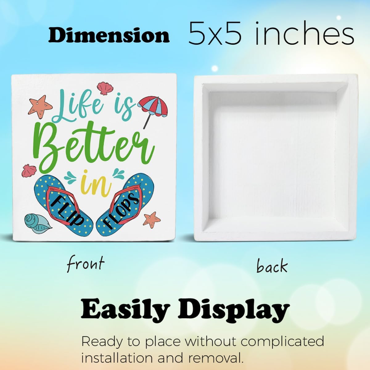 Summer Decor Beach Decorations Flip Flop Wooden Sign Rustic Home Decor 5 x 5 Inches