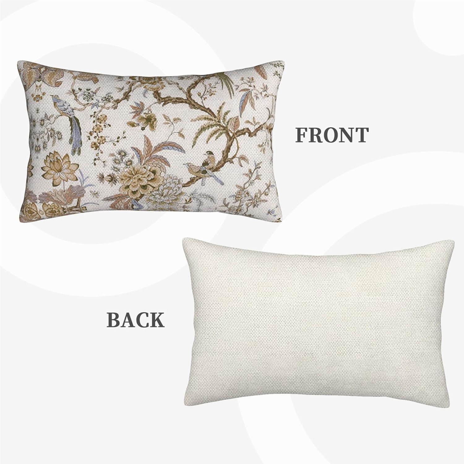 - 【Square Pillow Covers Size】 Chinoiserie flower birds pillow case set includes 2 pcs of farmhouse couch pillow covers (NO Pillow). Home decor farmhouse pillow covers measures 12x20 inch/ 30x50 cm. All the dragonfly floral decor throw pillow covers have a hidden zipper. It is easy to insert or remove the pillow core to replace the spring pillowcase. Easy to clean and wash, sturdy and not easy to damage.
