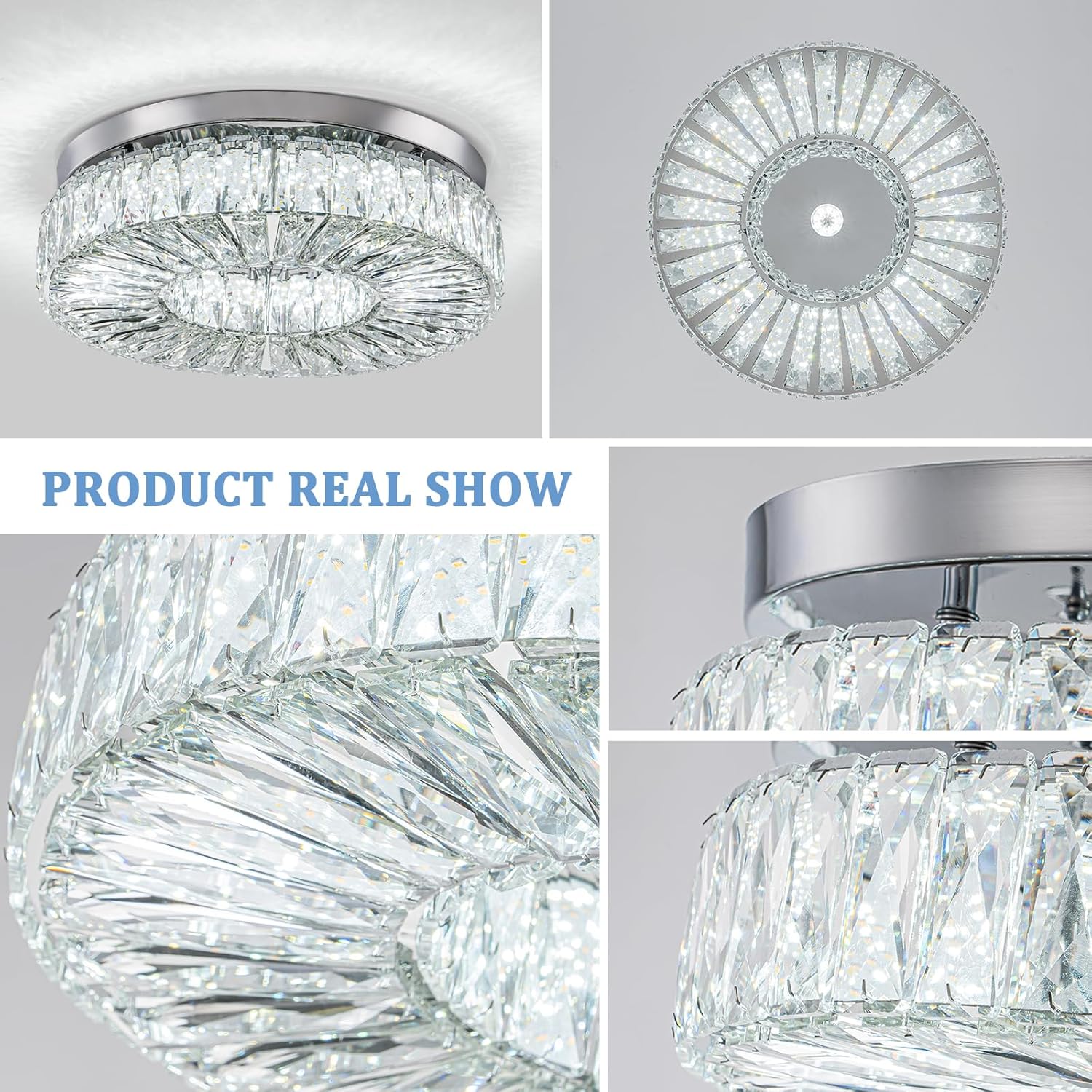 16.5 Inch Dimmable Chandelier with Remote Control LED Crystal Chandelier Modern Flush Mount Ceiling Light Fixtures for Living Room Bedroom Dining Room Entrance (dimmable-16.5")