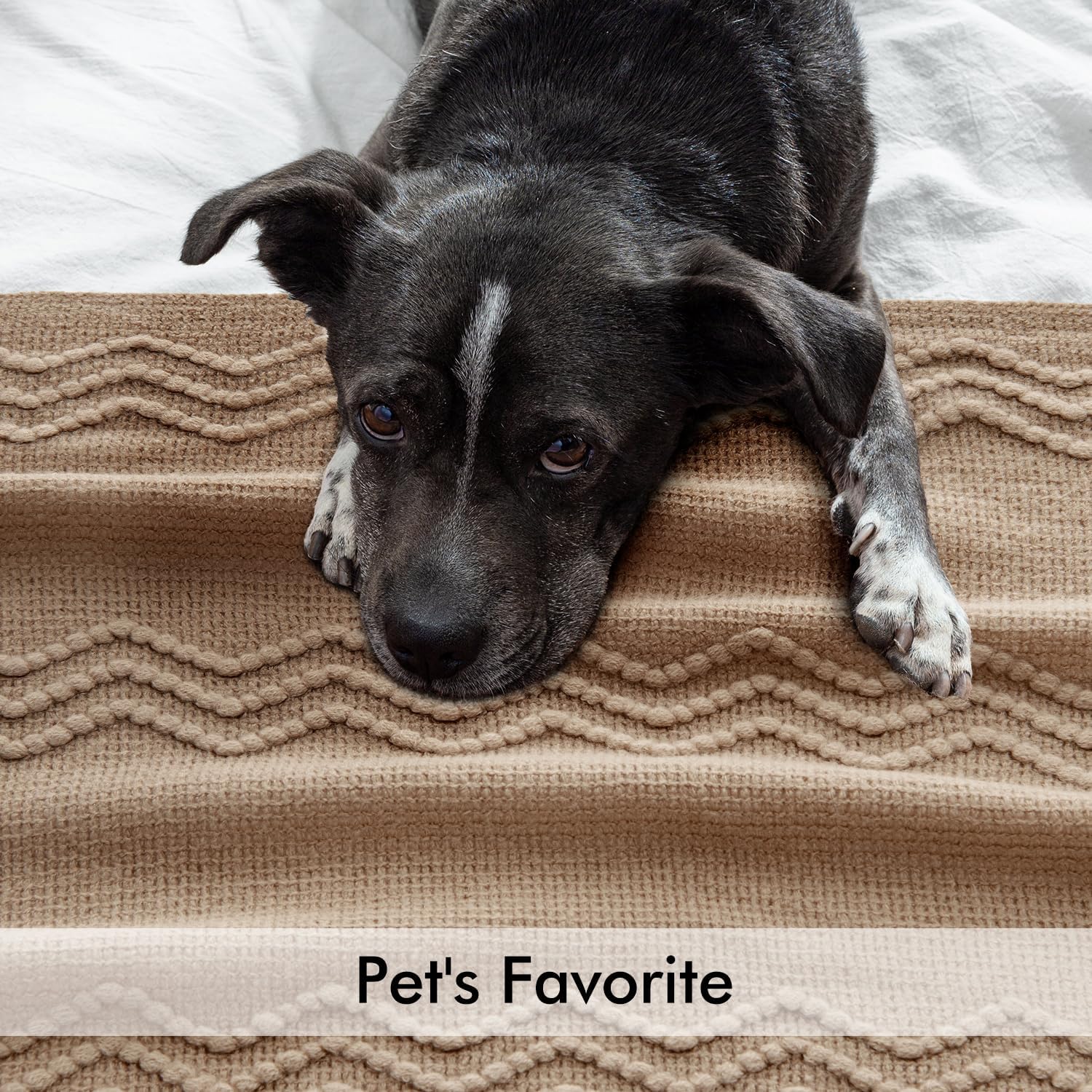 MIULEE Tan Taupe Knitted Throw Blanket for Couch Boho Textured Cozy Woven Blanket with Tassels for Sofa Chair Bed Living Room Farmhouse Home Decor Acrylic Wave Pattern 50"x60"