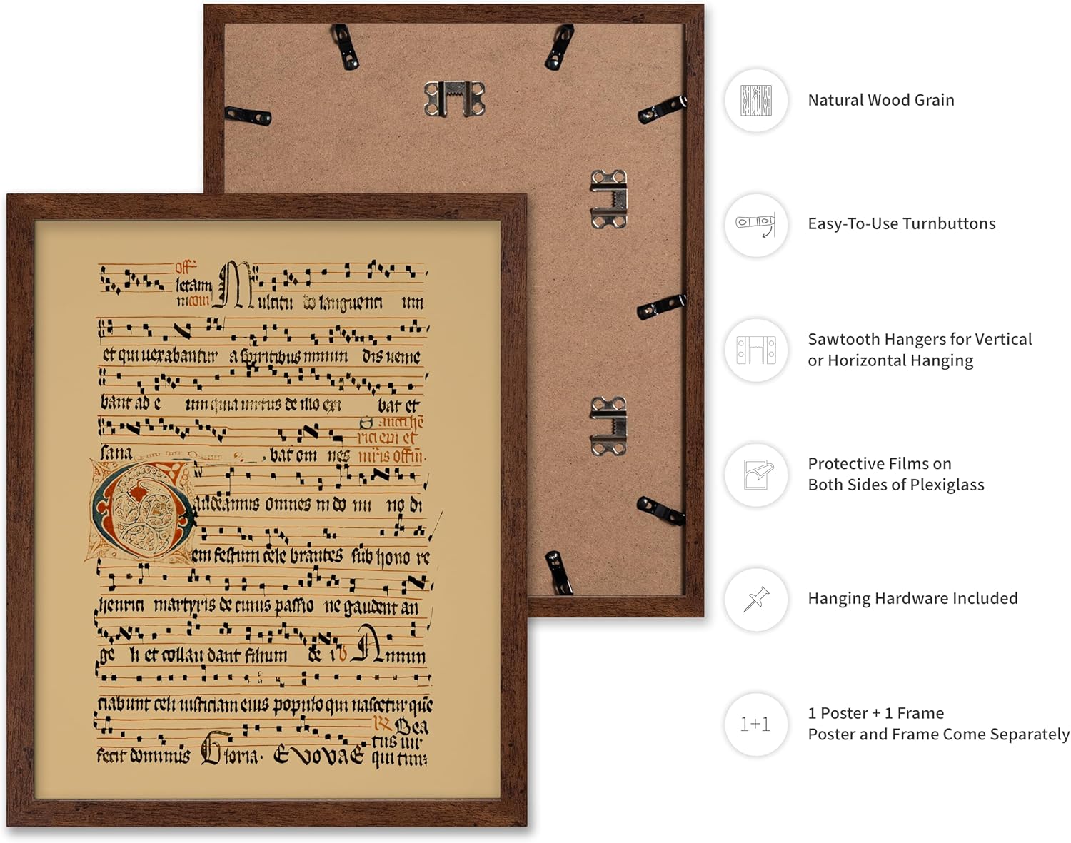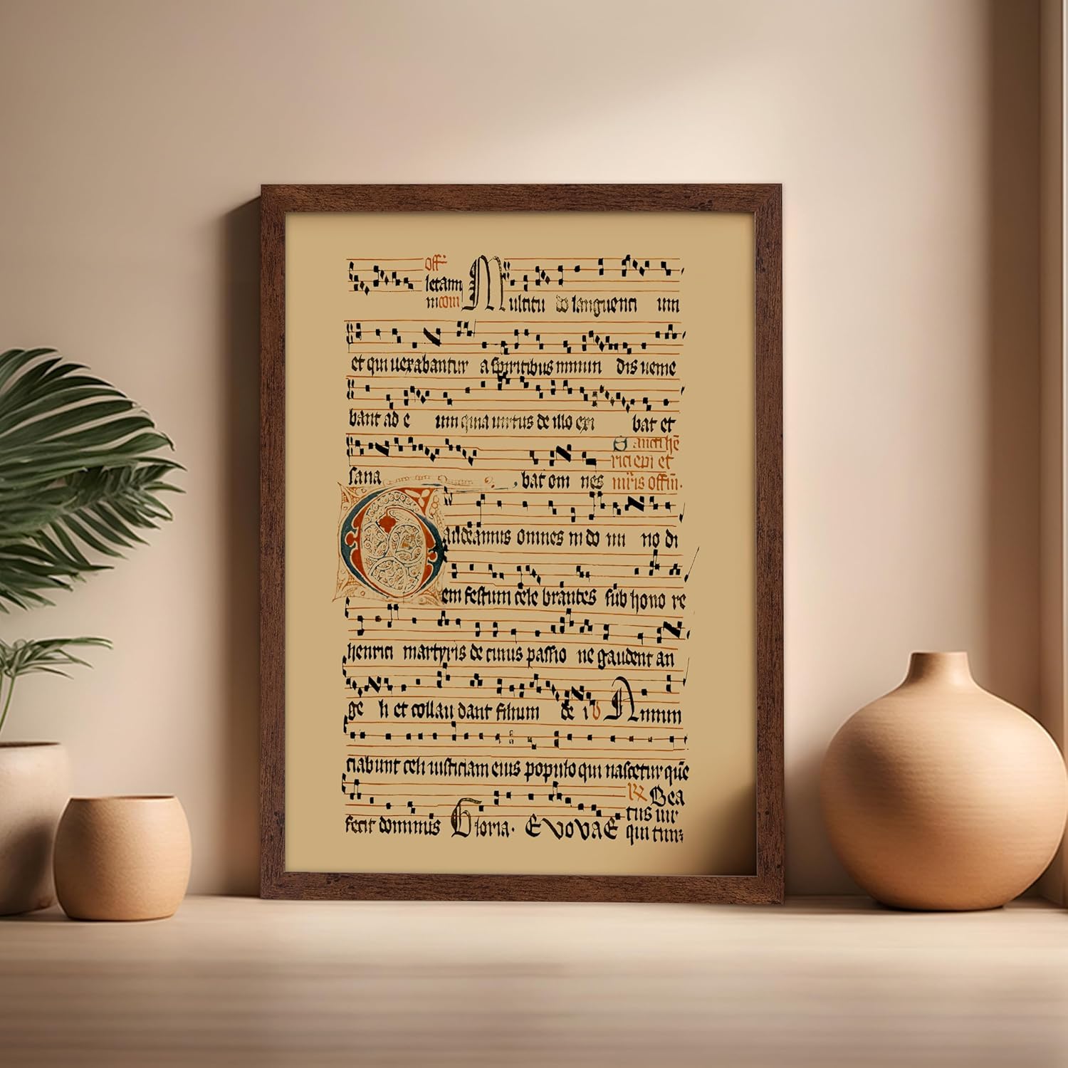 Poster Master Vintage Hymnal Poster - Retro Music Print - Gift for Artist, Friend - Graduale Aboense, Gregorian Chant Manuscript, Score - Wall Decor for Living Room, Bedroom, 16x20 Brown Framed
