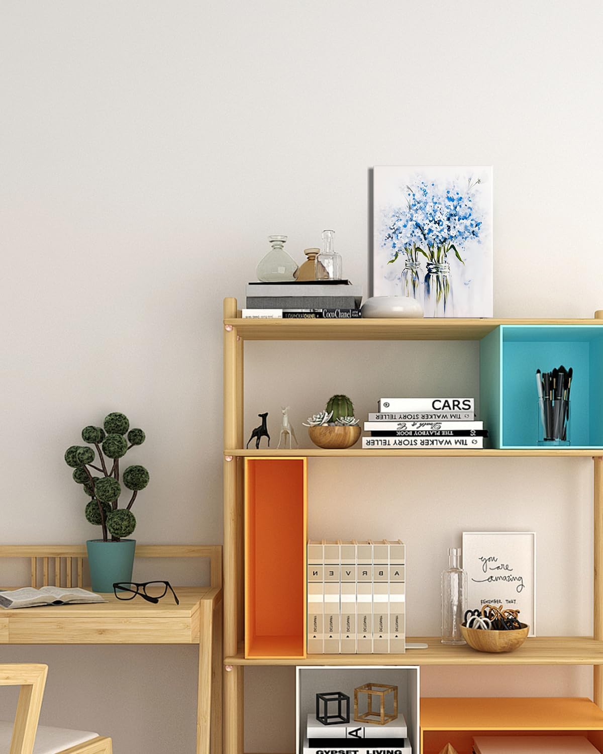 - Blue Flower Bouquet Wall Art】The abstract depiction showcases the elegance and beauty of the flowers, with soft and vibrant blue blossoms that resemble a lively painting, bringing joy and warmth to your space.