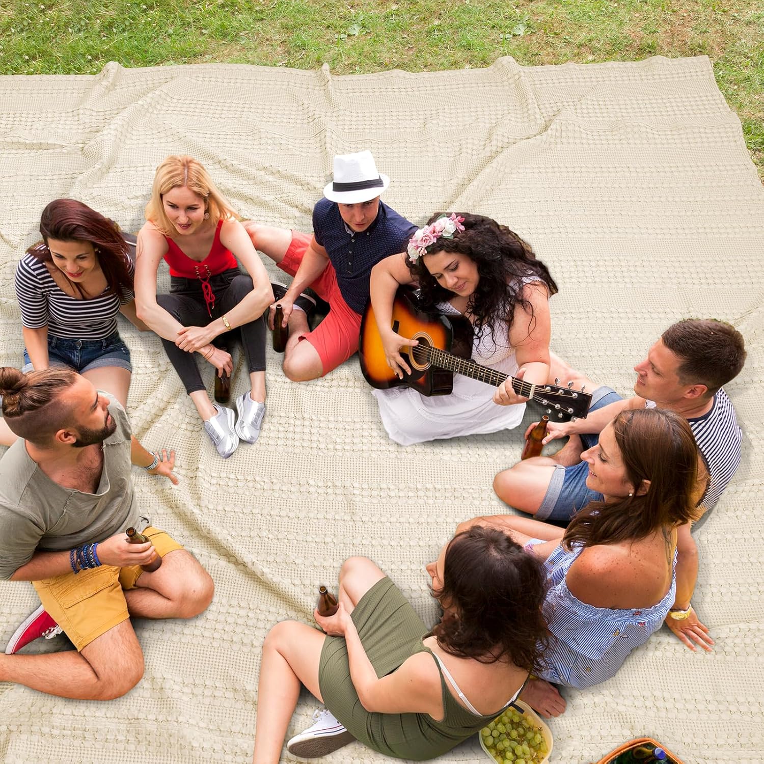 PHF 100% Cotton Waffle Blanket Oversized King 120"x120", Lightweight Breathable Extra Large 10'x10' Summer Blankets for Bed, Giant Big Luxury Aesthetic Woven Bedding for Home Decor, Undyed