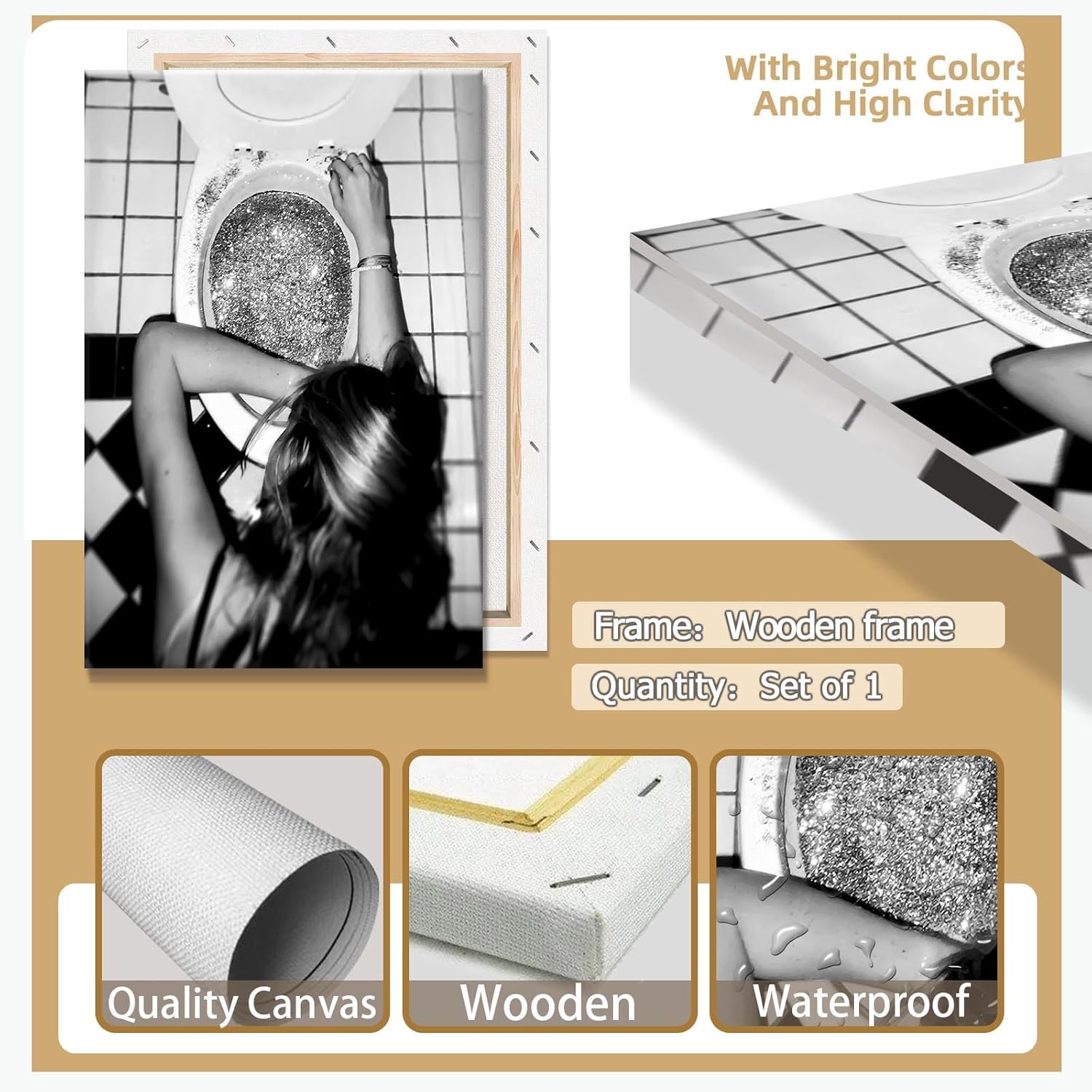 Funny Bathroom Wall Art Black and White posters Bar Disco Party prints painting Girls Bathroom Canvas wall art Funky aesthetics Teen Girl Bedroom wall decor for 24x36in Framed