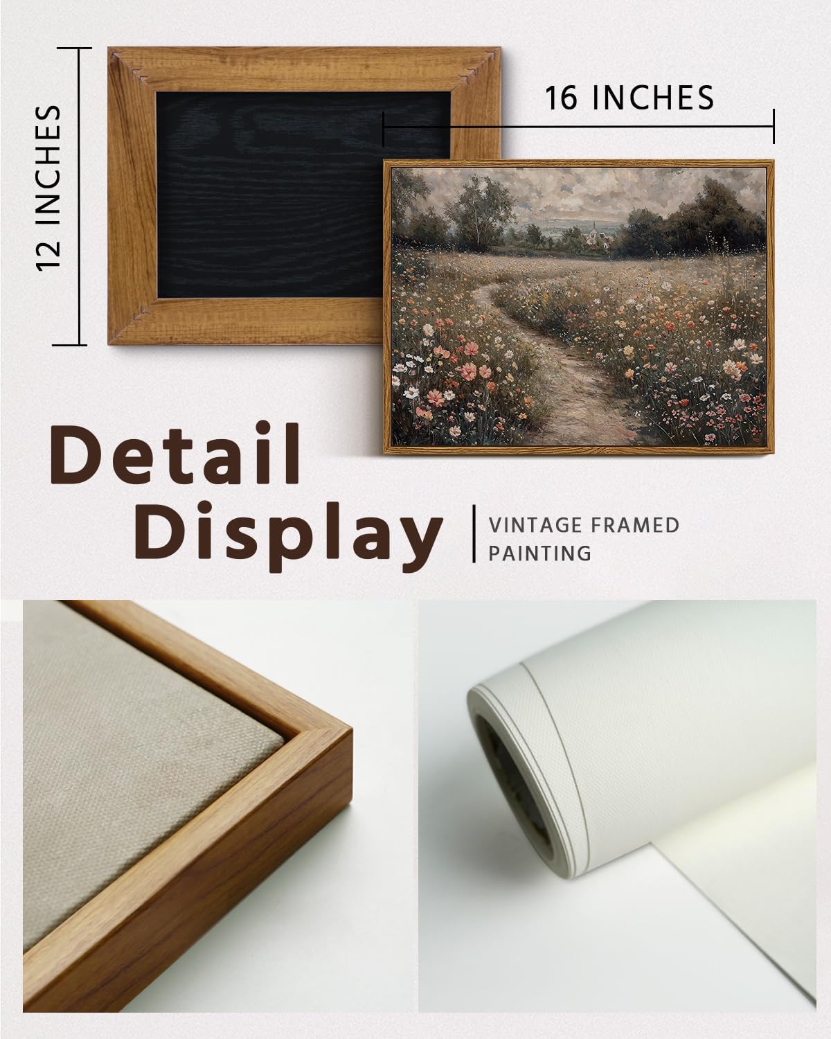 VIYYIEA Framed Canvas Wall Art Home Decor Vintage Landscape Nature Country Wildflower Paintings Farmhouse Pictures Floral Artwork Rustic Flower Prints Cottagecore Living Room Bedroom Bathroom 12x16in