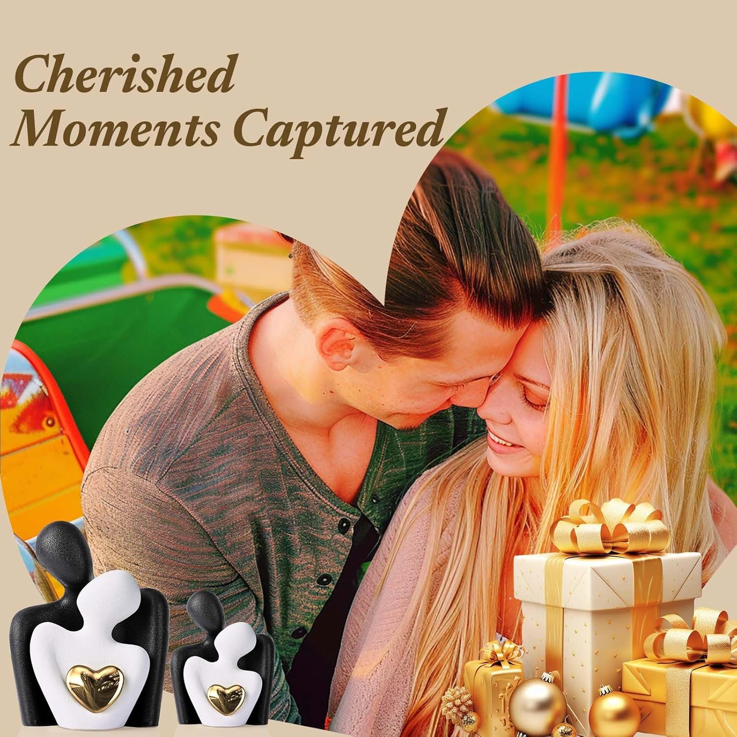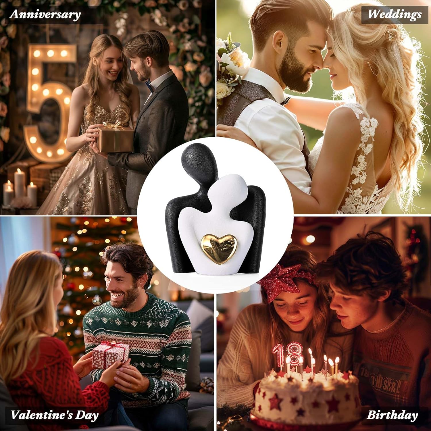 - Couples Bedroom Decor: This ceramic 'Hugging Couple Statue' embodies love and intimacy as the couple figurine shares a gaze, with a shining gold heart at the center, symbolizing a bright and precious bond. It's a mini yet impactful piece that brings a symbolic sparkle to any room, from the living room to the love office decor.
