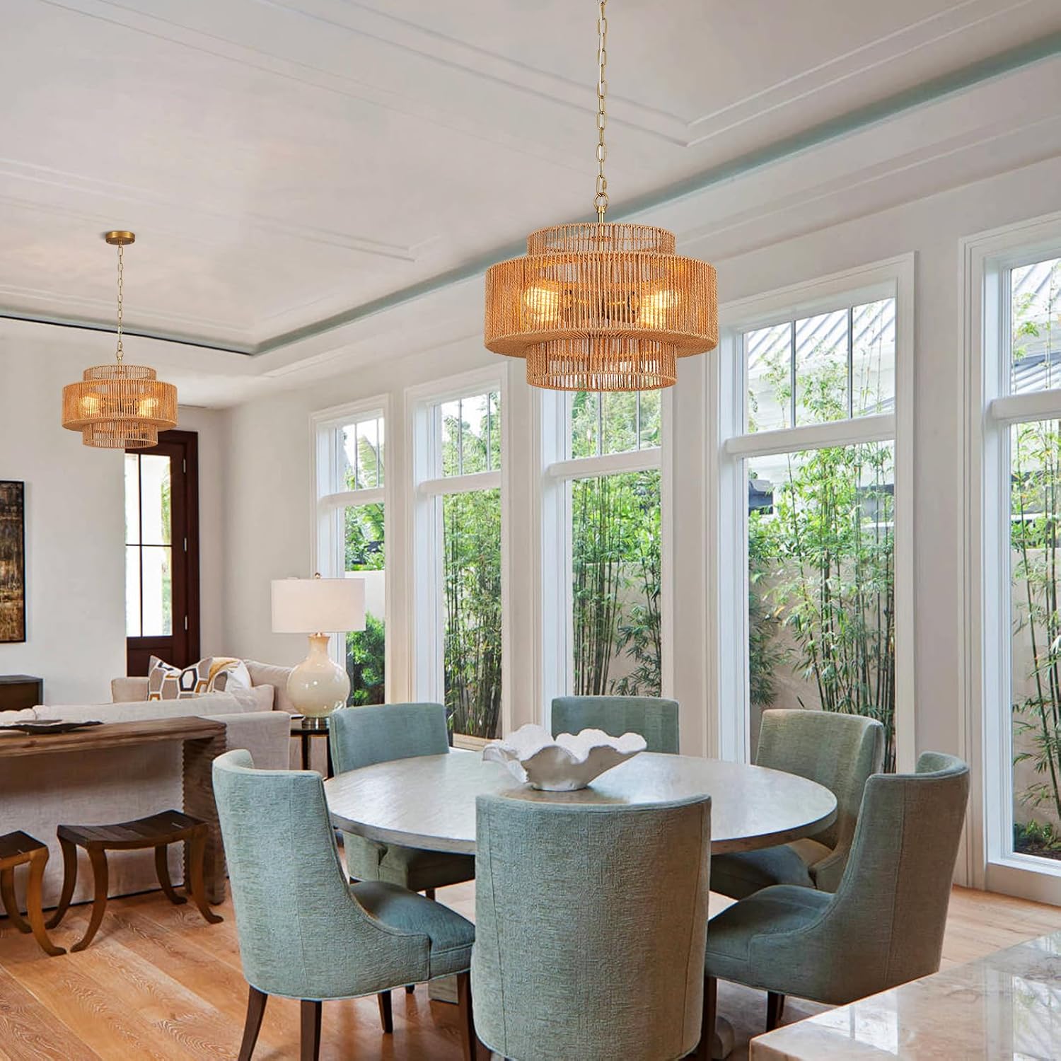 - 【Hand-Woven Rattan Lampshade】The rattan chandelier is a stunning fusion of craftsmanship and design. The rattan weave allows the light to gently filter through, casting beautiful shadows. Experience the artistry of handwoven rattan, which adds a natural touch to your decor.