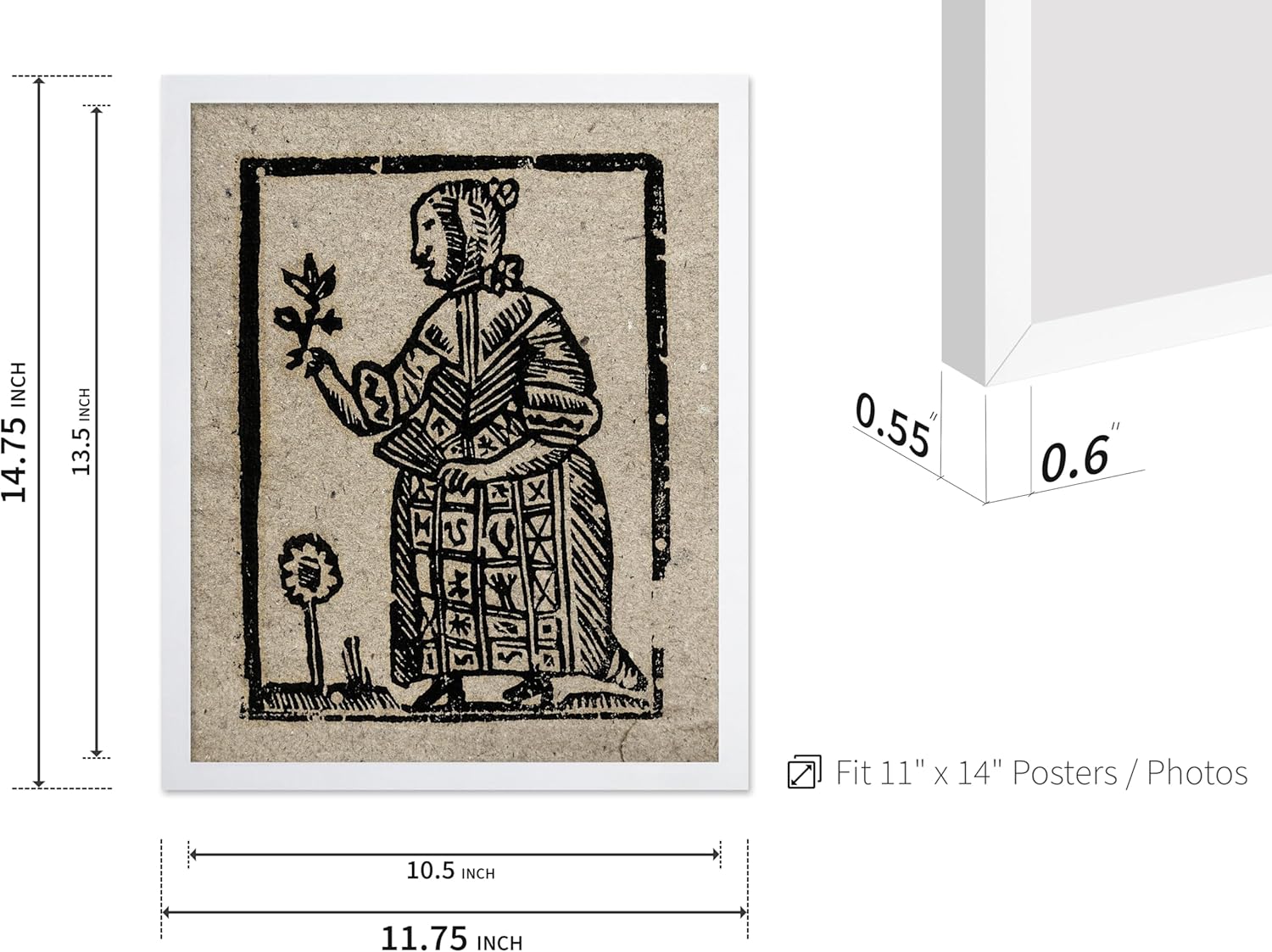 Poster Master Vintage Woodcut Poster - Retro Medieval Print - Gift for Gothic, Horror Fan - Witch Holding a Plant, Magic, Spell, Herbalist - Wall Decor for Bedroom, Dorm, 11x14 White Framed