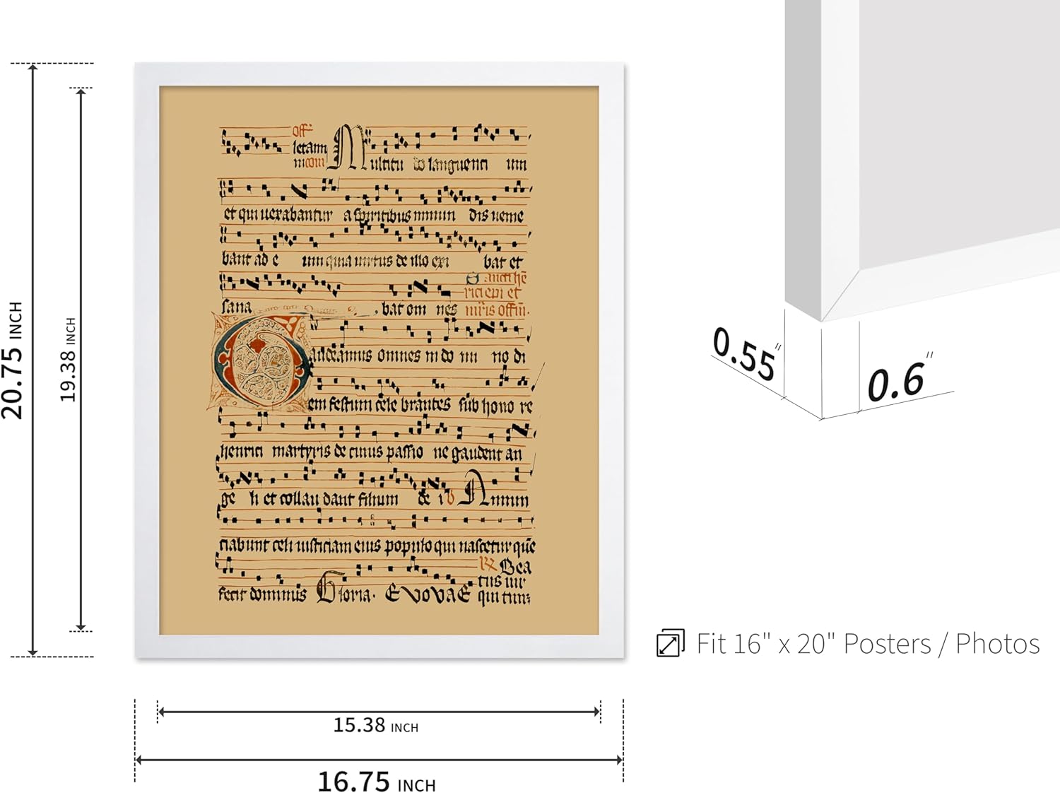 Poster Master Vintage Hymnal Poster - Retro Music Print - Gift for Artist, Friend - Graduale Aboense, Gregorian Chant Manuscript, Score - Wall Decor for Living Room, Bedroom, 16x20 White Framed