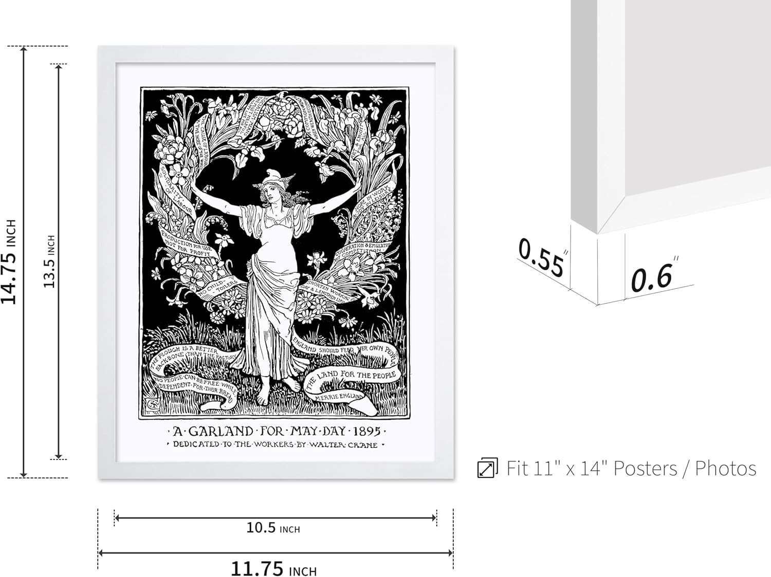 Poster Master Vintage Walter Crane Poster - Retro A Garland for May Day Print - Socialist Art - Gift for Him, Her, Men, Women - Wall Decor for Home, Office, Living Room, 11x14 White Framed