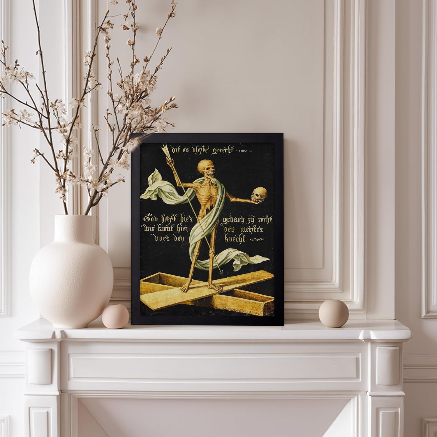 Poster Master Vintage Medieval Poster - Retro Gothic Print - Gift for Artist, Friend - Allegory of Life and Death, Skeleton, Dark, Skull - Wall Decor for Home, Living Room, 11x14 Black Framed