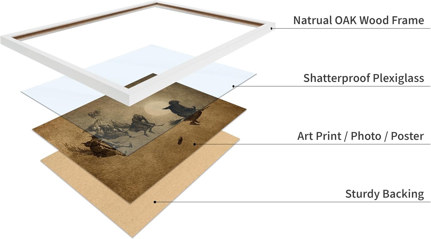 Poster Master Vintage William Holbrook Beard Poster - Retro Occult Print - Gift for Gothic, Horror Fan - The Witches Ride, Pagan, Goth, Magic - Wall Decor for Bedroom, Dorm, 11x14 White Framed