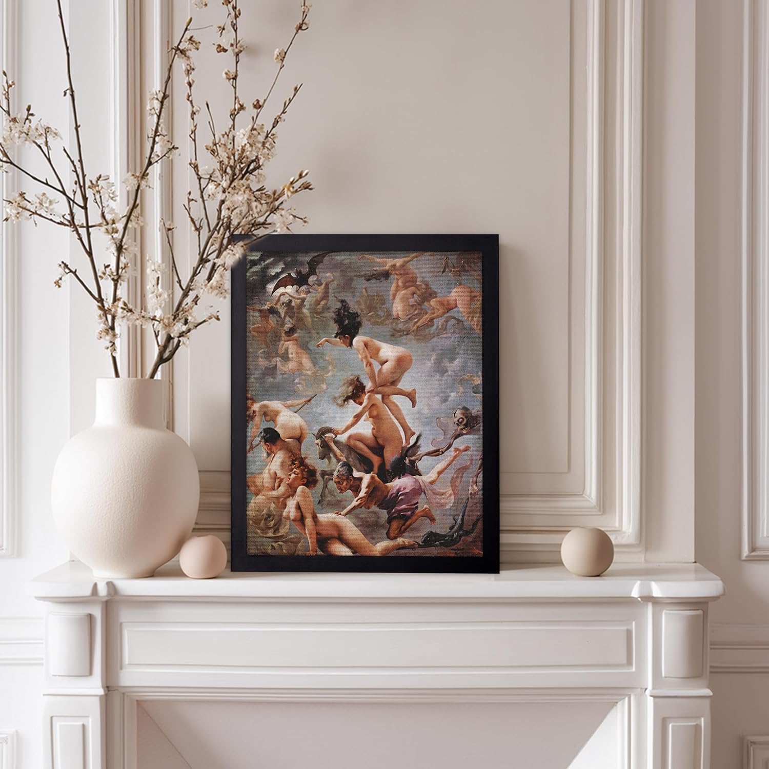 Poster Master Vintage Luis Ricardo Falero Poster - Retro Occult Print - Gift for Gothic, Horror Fan - Witches Going to their Sabbath, Pagan - Wall Decor for Bedroom, Dorm, 8x10 Black Framed