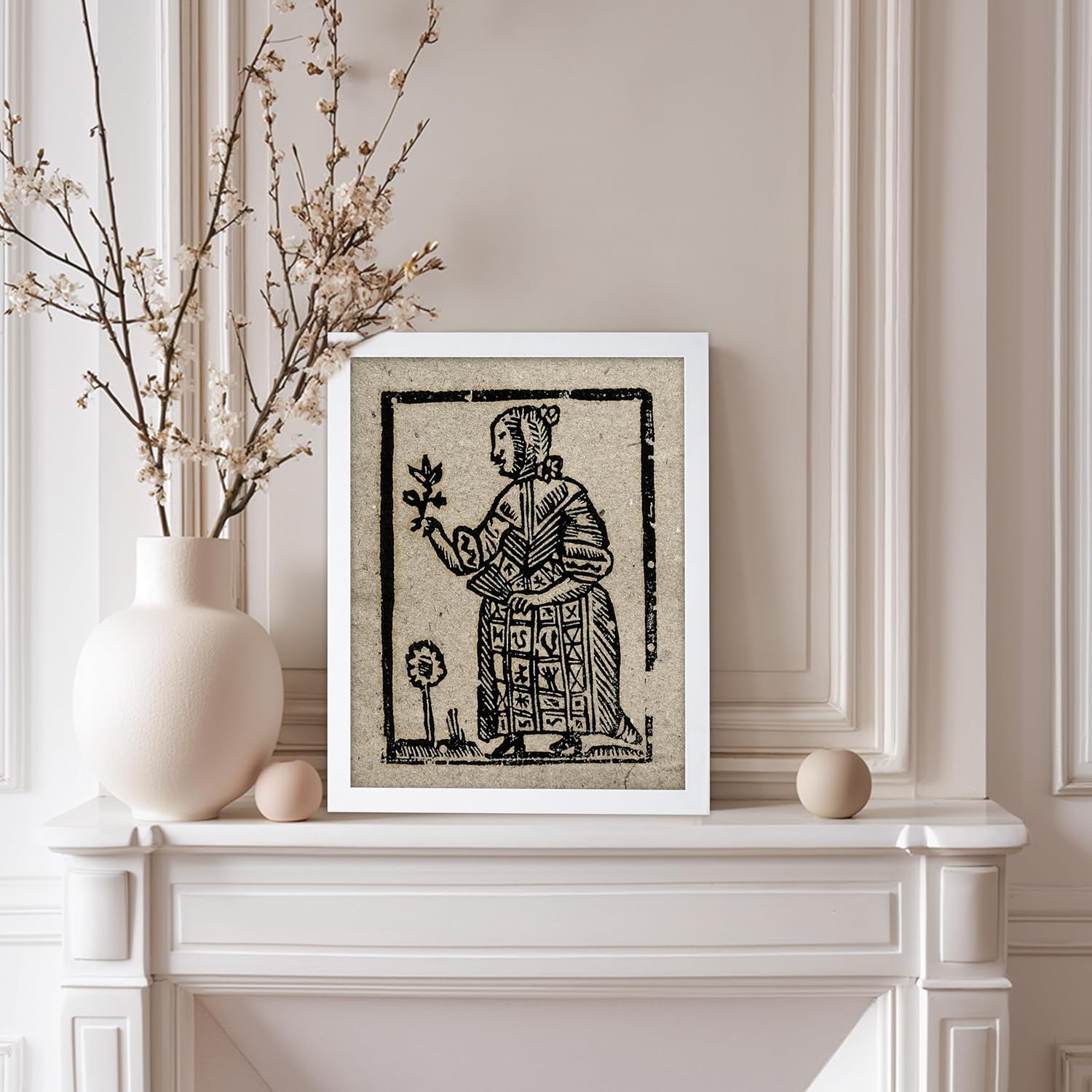 Poster Master Vintage Woodcut Poster - Retro Medieval Print - Gift for Gothic, Horror Fan - Witch Holding a Plant, Magic, Spell, Herbalist - Wall Decor for Bedroom, Dorm, 8x10 White Framed