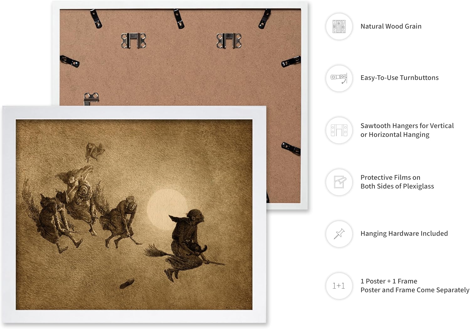 Poster Master Vintage William Holbrook Beard Poster - Retro Occult Print - Gift for Gothic, Horror Fan - The Witches Ride, Pagan, Goth, Magic - Wall Decor for Bedroom, Dorm, 8x10 White Framed