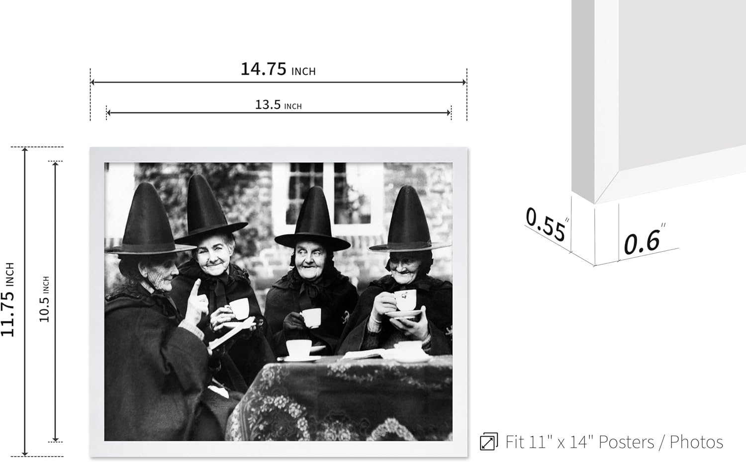 Poster Master Classic Photograph Poster - Vintage Halloween Print - Gift for Artist, Friend - Witches Tea Party, Old Women Smiling, Wearing Robes - Wall Decor for Living Room, 11x14 White Framed