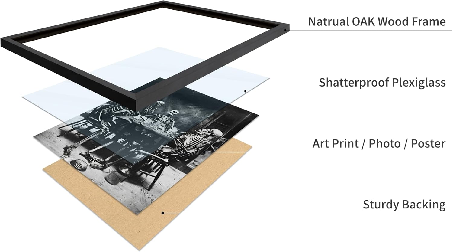 Poster Master Vintage Photograph Poster - Retro Daguerreotype Print - Gift for Artist, Friend - Skeletons Smoking at Table, Dinner Party, Goth - Wall Decor for Home, Dorm, 11x14 Black Framed