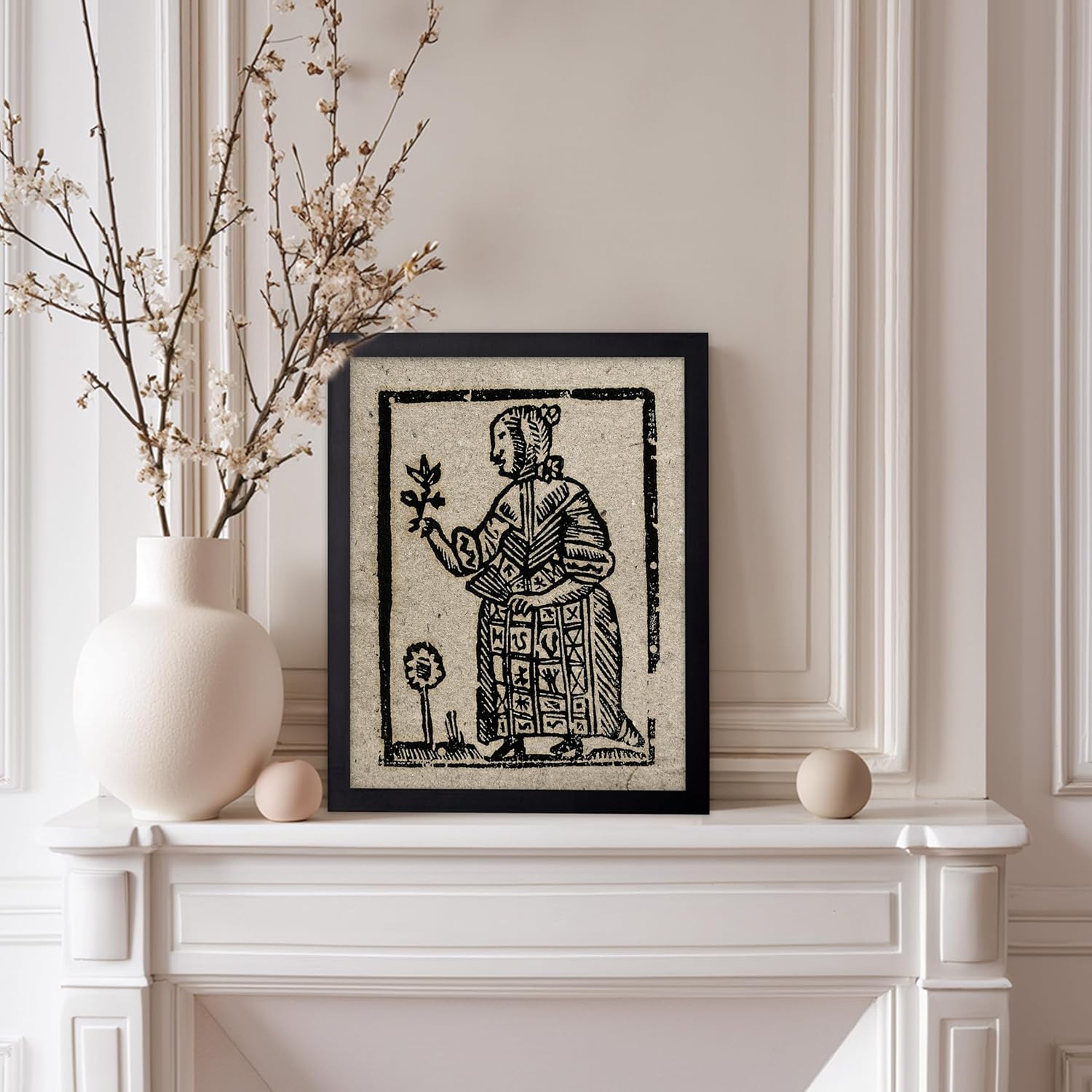 Poster Master Vintage Woodcut Poster - Retro Medieval Print - Gift for Gothic, Horror Fan - Witch Holding a Plant, Magic, Spell, Herbalist - Wall Decor for Bedroom, Dorm, 8x10 Black Framed