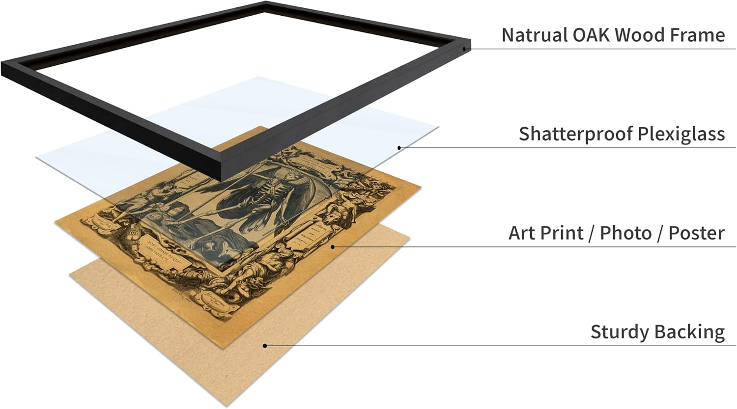 Poster Master Vintage Medieval Poster - Retro Gothic Print - Gift for Artist, Friend - Angel of Death, Memento Mori, Life, Skeleton, Dark - Wall Decor for Home, Living Room, 16x20 Black Framed
