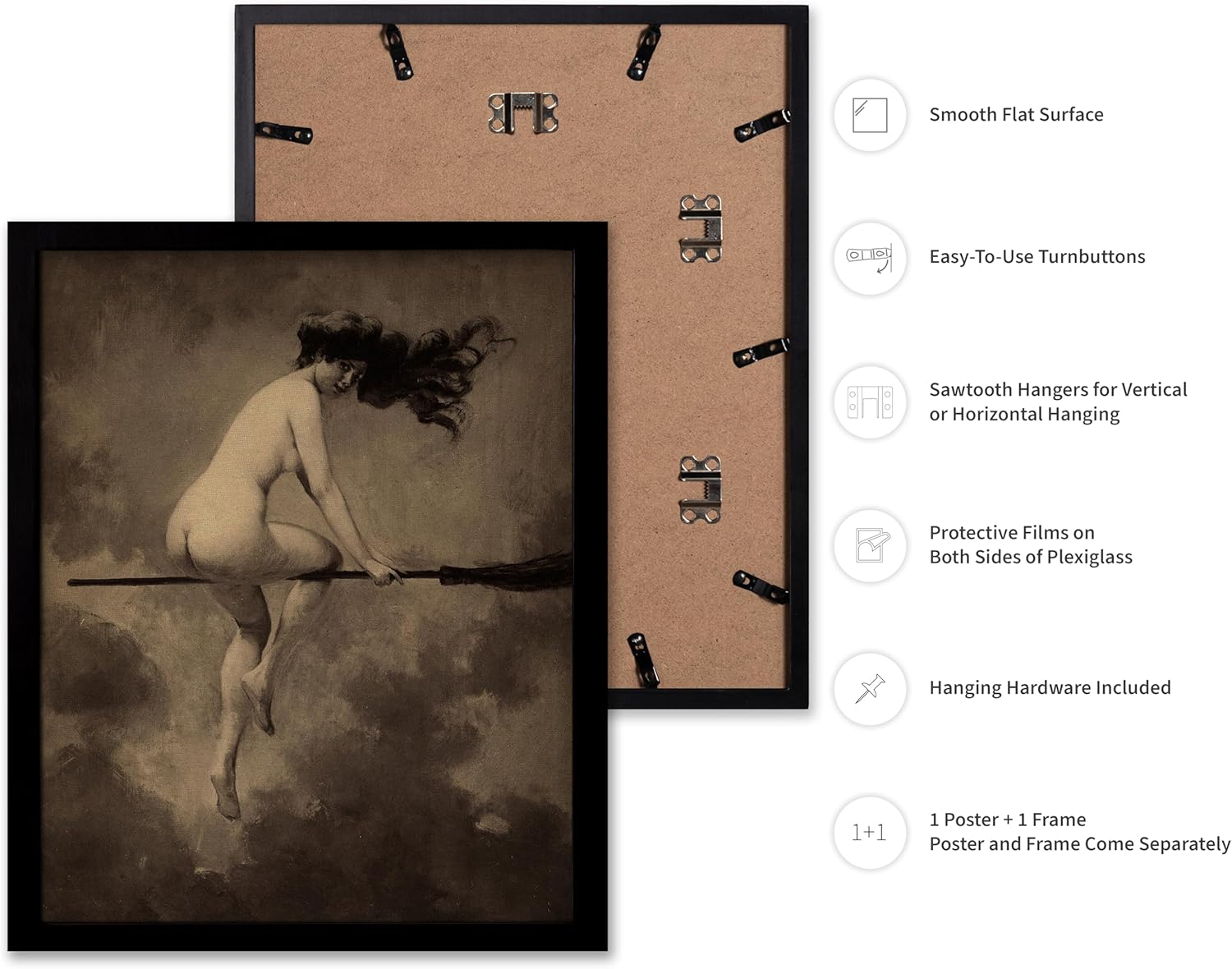 Poster Master Vintage Albert Joseph Penot Poster - Retro Halloween Print - Gift for Artist, Friend - Departure for the Sabbath, Naked Witch on Broom - Wall Decor for Bedroom, 16x20 Black Framed
