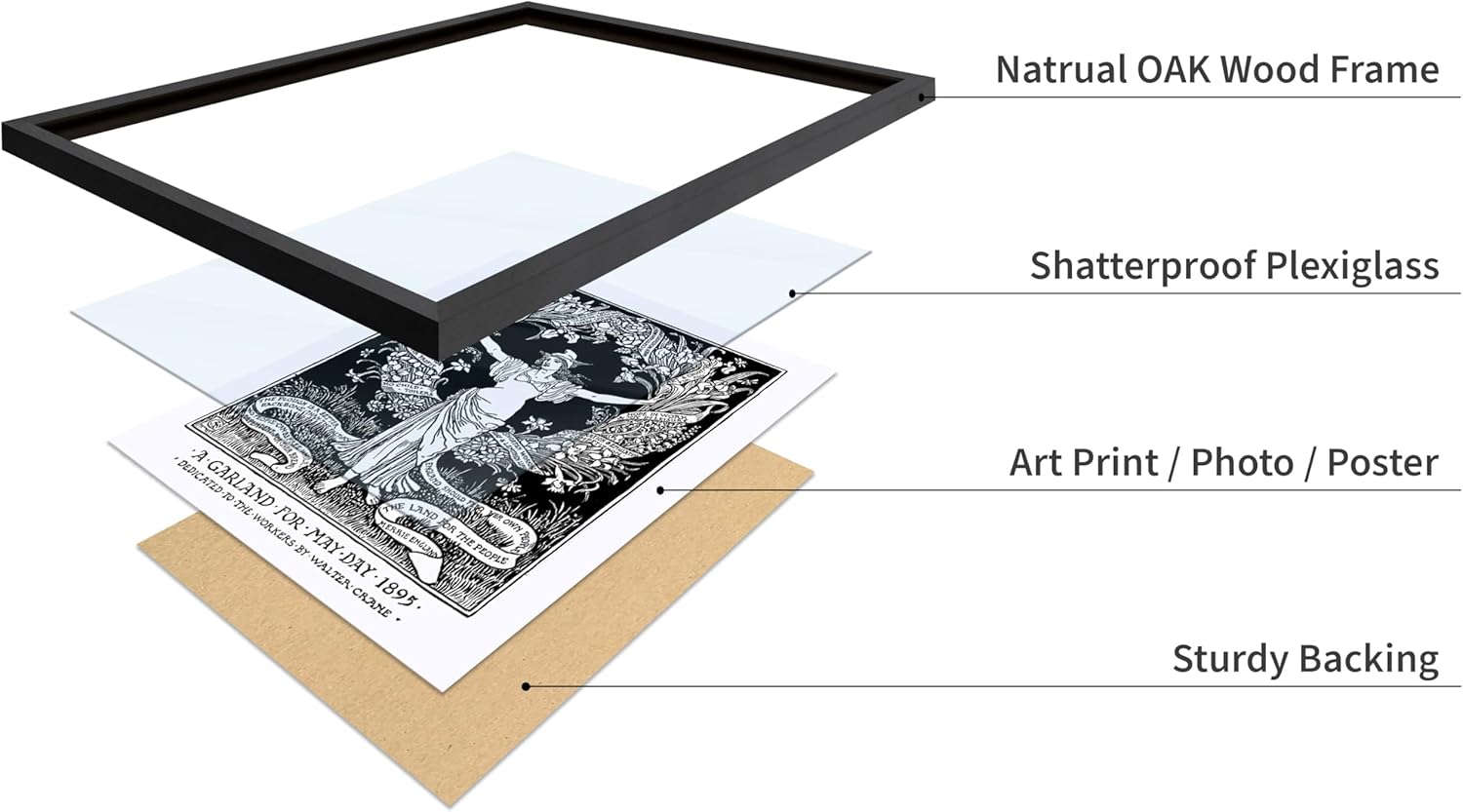 Poster Master Vintage Walter Crane Poster - Retro A Garland for May Day Print - Socialist Art - Gift for Him, Her, Men, Women - Wall Decor for Home, Office, Living Room, 11x14 Black Framed