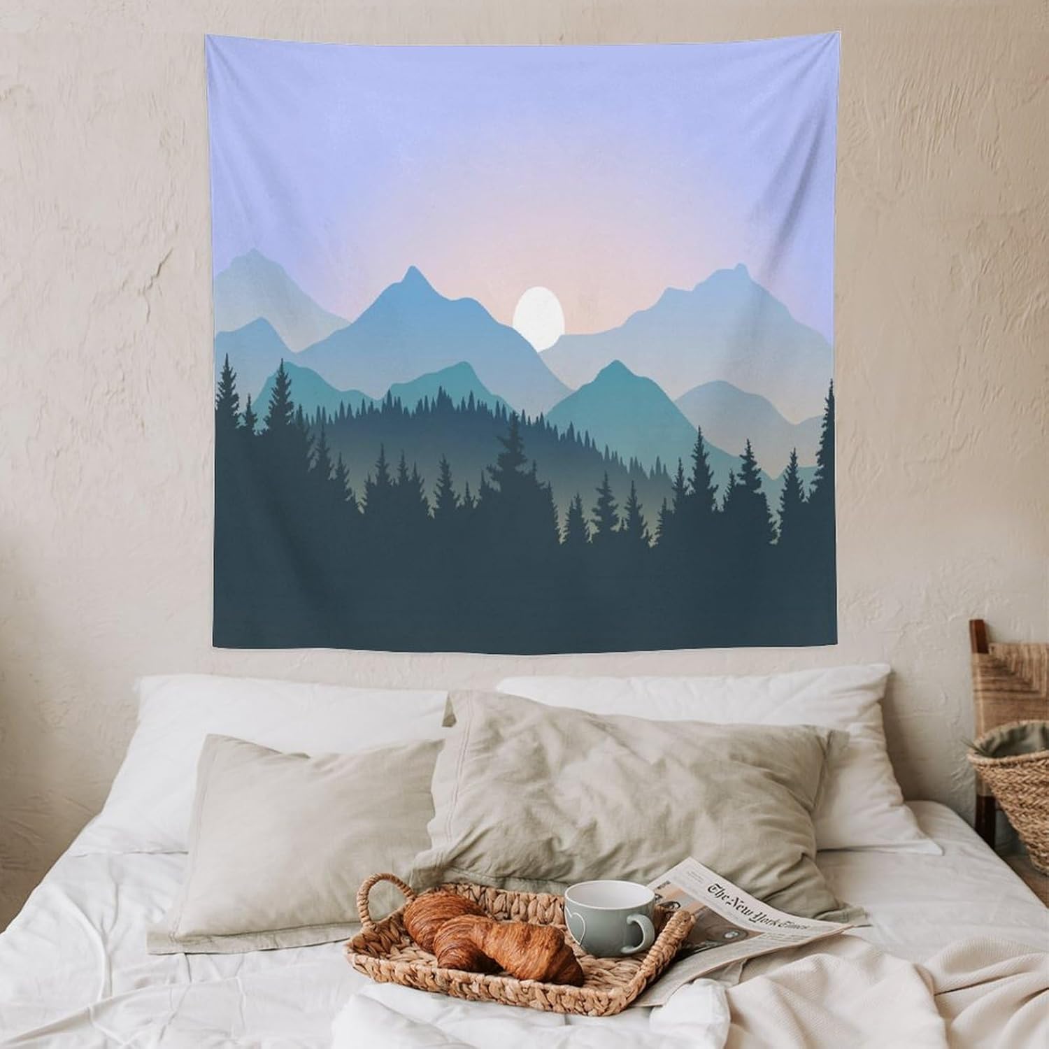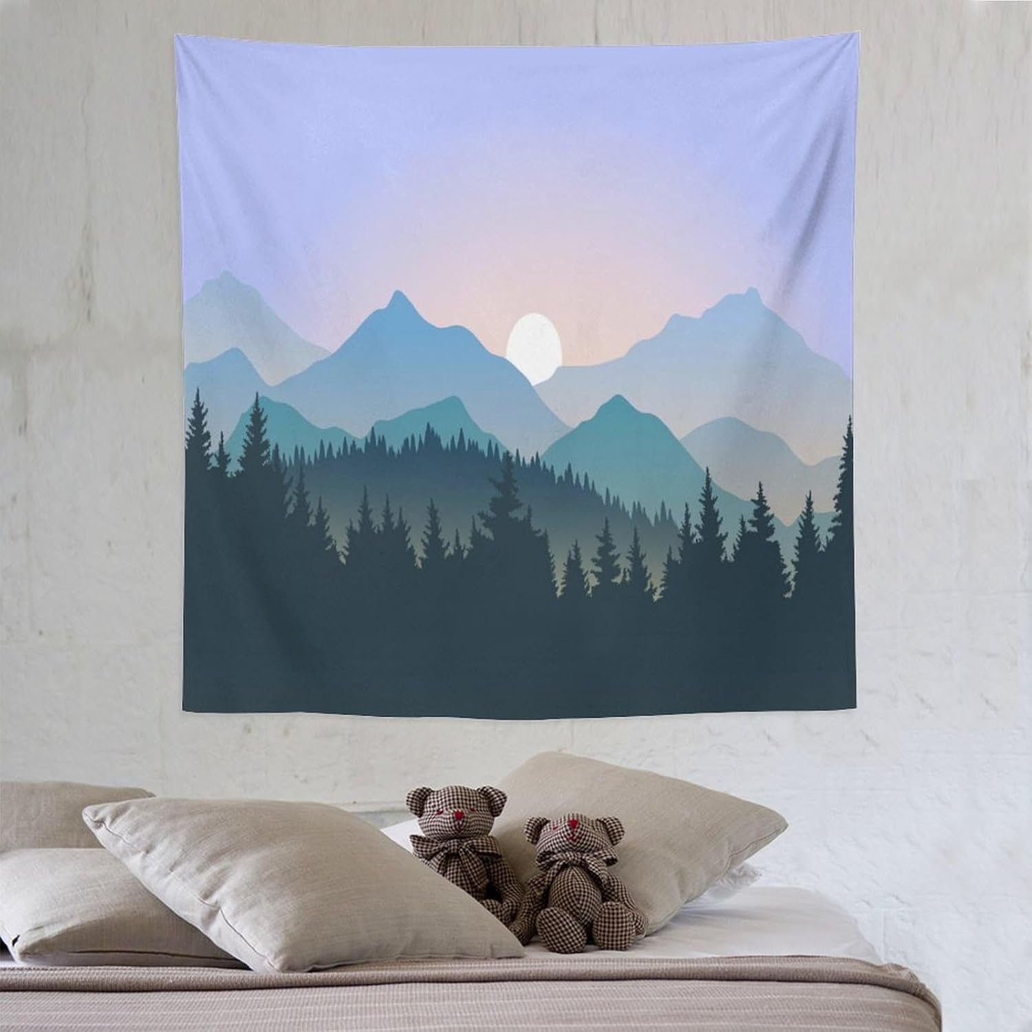 HZOHNAGO Mountain Tapestry Forest Mountain Sunrise Pattern Printed Wall Tapestry Wall Hanging for Bedroom Living Room Dorm 60" W x 60" H