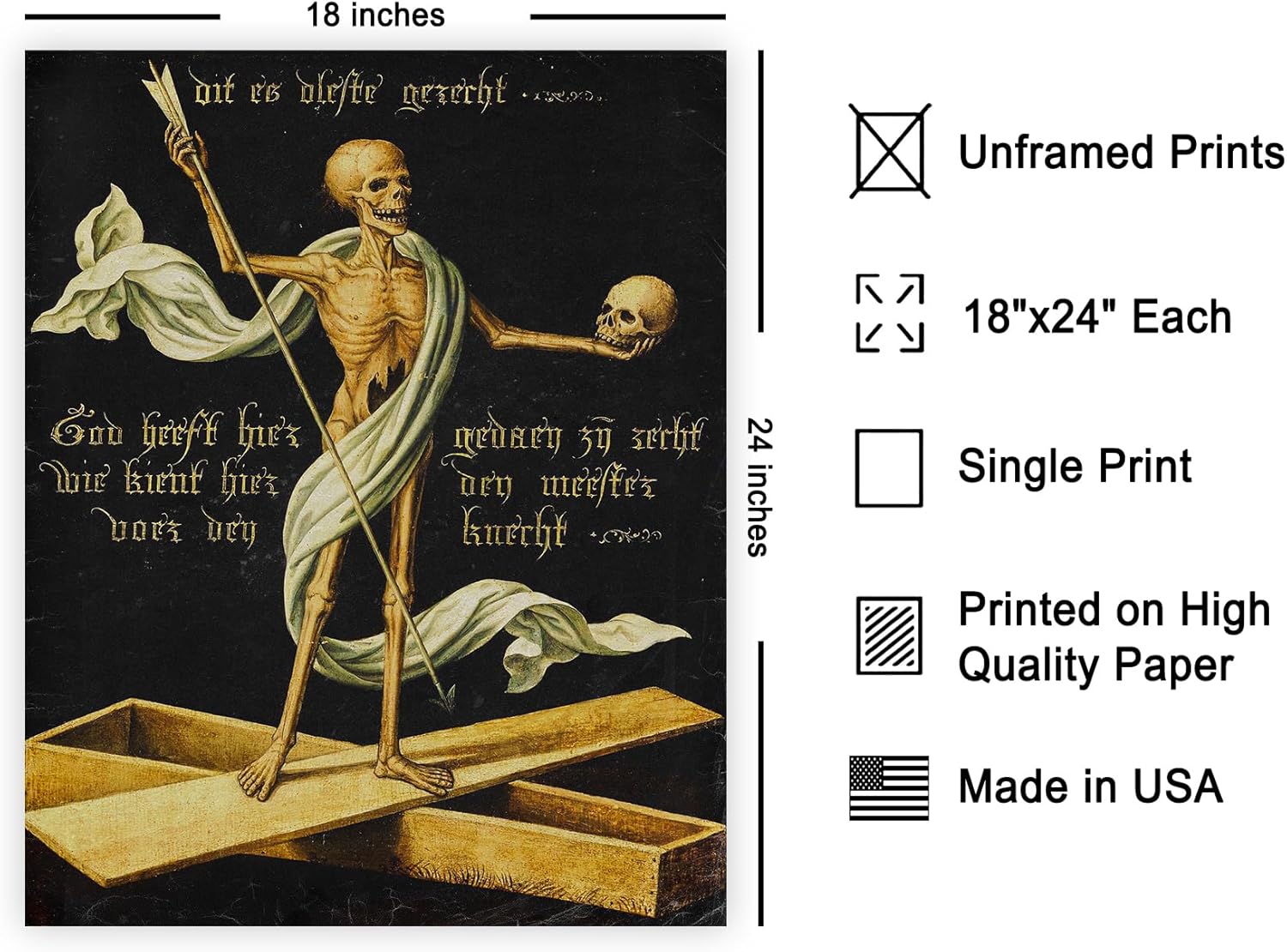 Poster Master Vintage Medieval Poster - Retro Gothic Print - Gift for Artist, Friend - Allegory of Life and Death, Skeleton, Dark, Skull - Wall Decor for Home, Living Room, 18x24 Unframed Wall Art