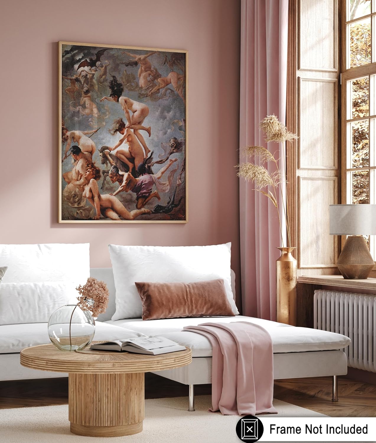 Poster Master Vintage Luis Ricardo Falero Poster - Retro Occult Print - Gift for Gothic, Horror Fan - Witches Going to their Sabbath, Pagan - Wall Decor for Bedroom, Dorm, 24x32 Unframed Wall Art