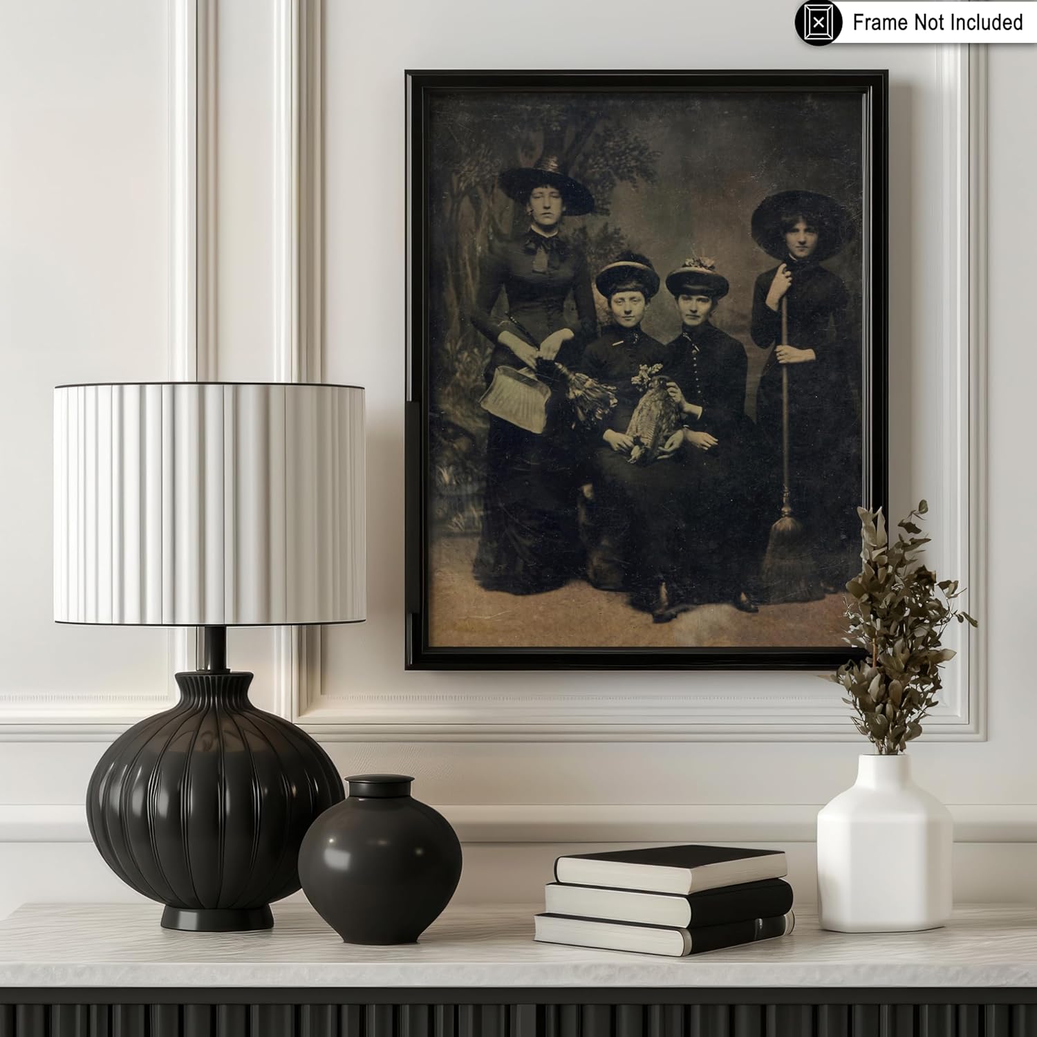 Poster Master Vintage Photograph Poster - Retro Halloween Print - Gift for Artist, Friend - Four Witches Wearing Robes, Sabbath, Coven, Sorcery - Wall Decor for Home, Office, 24x32 Unframed Wall Art