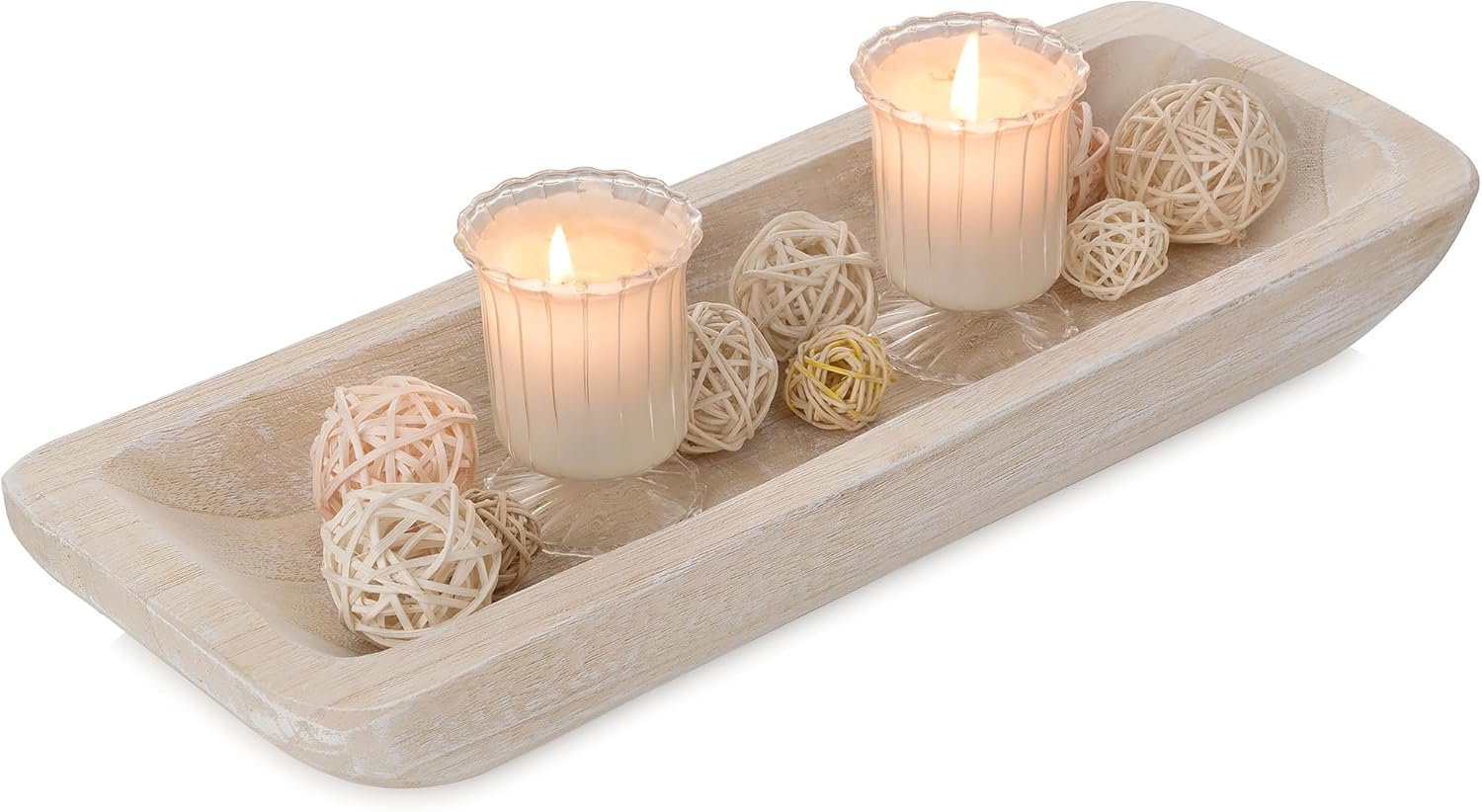 Romadedi Decorative Bowls for Home Decor - 16" Wooden Dough Bowl for Decor, Large Wood Bowl for Kitchen Table Centerpieces Long Narrow Wooden Tray for Dining Table Whitewashed