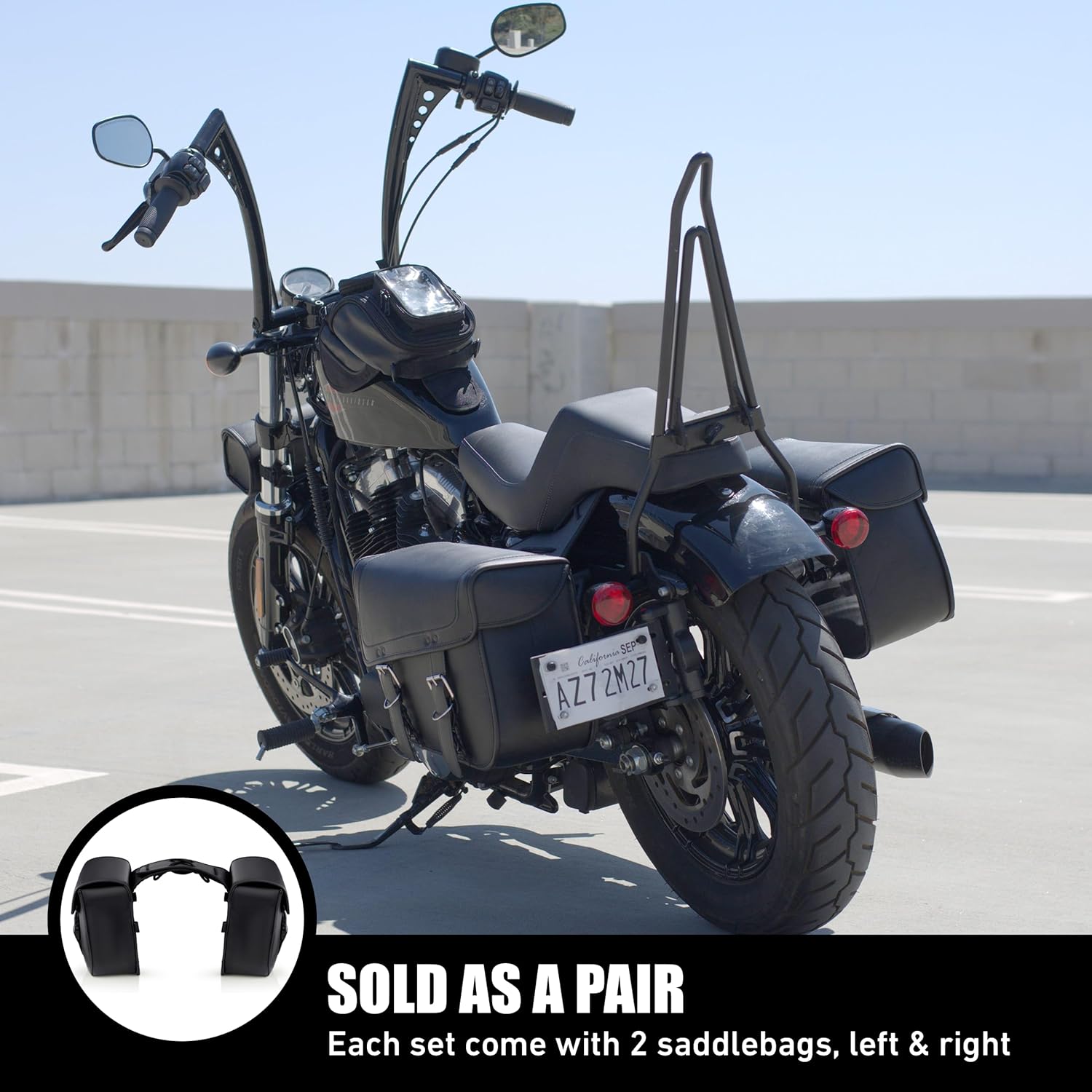 Nomad Leather Motorcycle Saddlebags Large Quick-Easy Universal Fit Throw Over Saddle Bags Cruiser Biker Side Bags (Black)