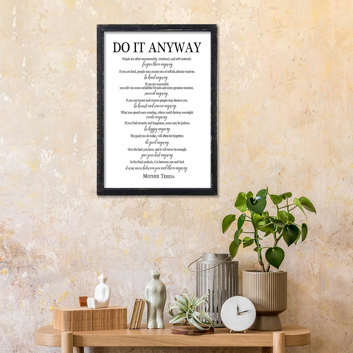 Do It Anyway Mother Teresa Wall Art Decor 16x11 Inch Wooden Framed Wall Hanging Sign (Black)