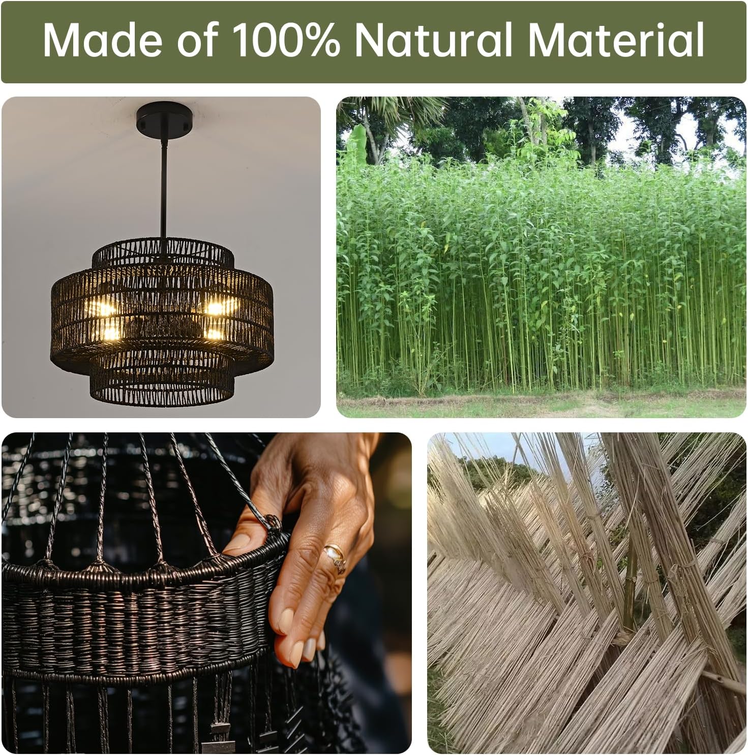 - [DURABILITY & ECO-FRIENDLY] Made from top-quality natural rattan, this Farmhouse Chandeliers Hanging Light Fixtures is designed for long-term use. It's fade-resistant, safe, eco-friendly and health-conscious. Plus, it comes with a thickened metal lamp body frame for added durability.
