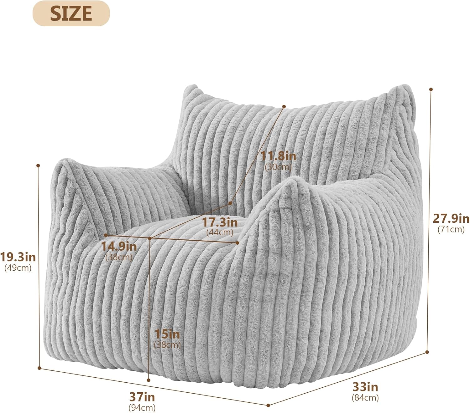 - 【Comfortable Support】-The comfy fuzzy bean bag couch chair is stuffed high-density and high resilience foam. Beside the high quality sponge, our beanbag chair designed with ergonomic backrest and large armrests, which providing more supportive when you sitting or lying on the sofa.